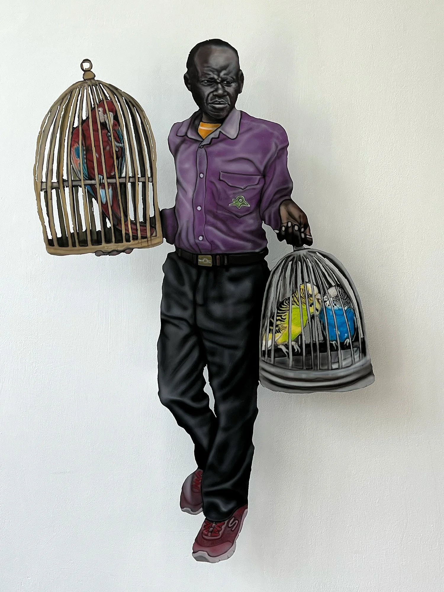 Artist: Wanjohi Maina, Circle Art Gallery. Realistic two-dimensional metal cutouts.