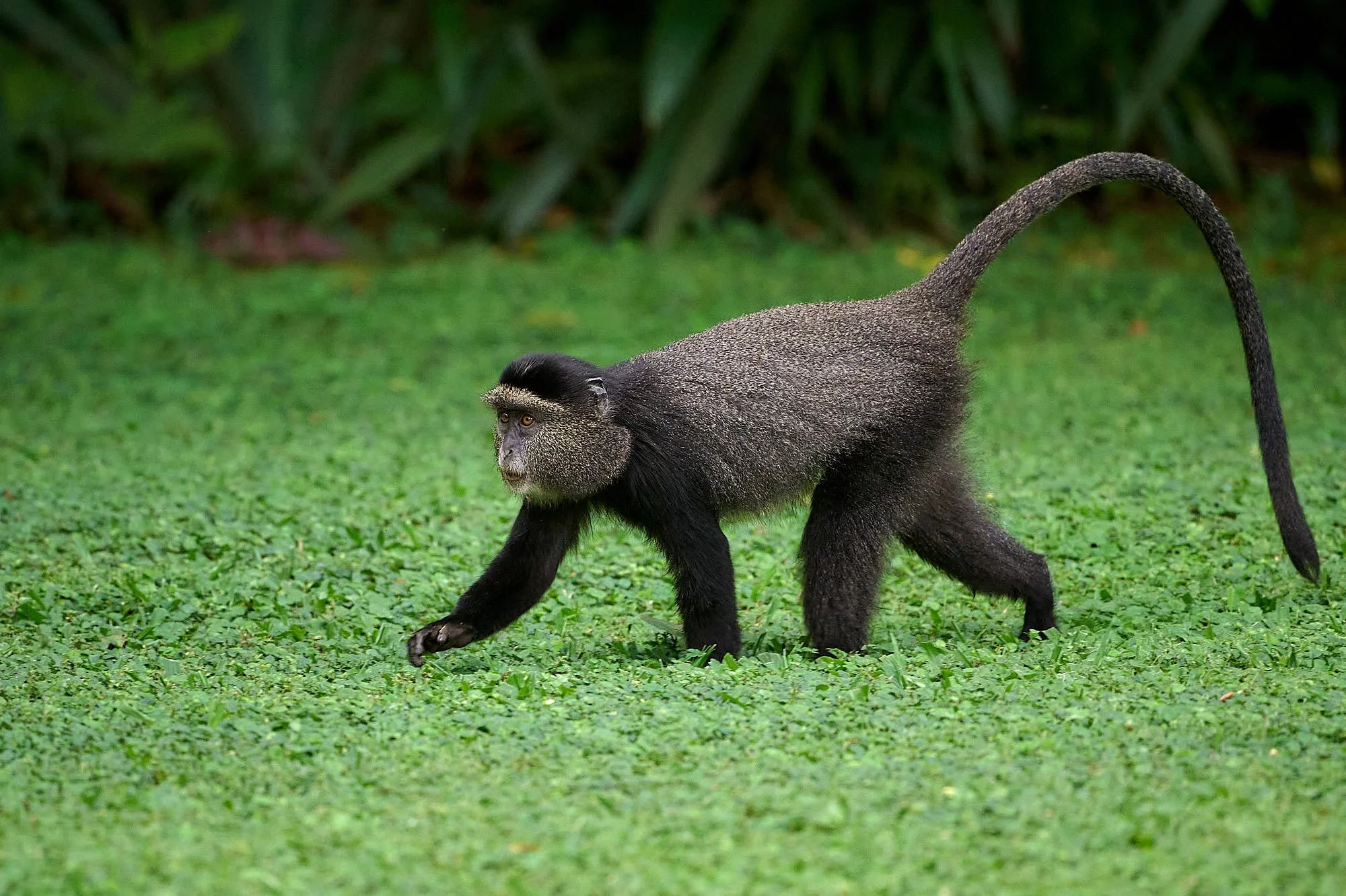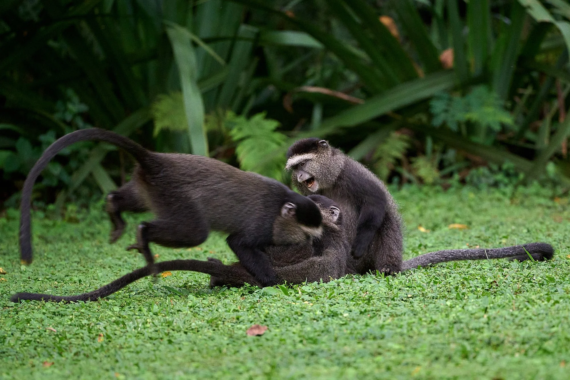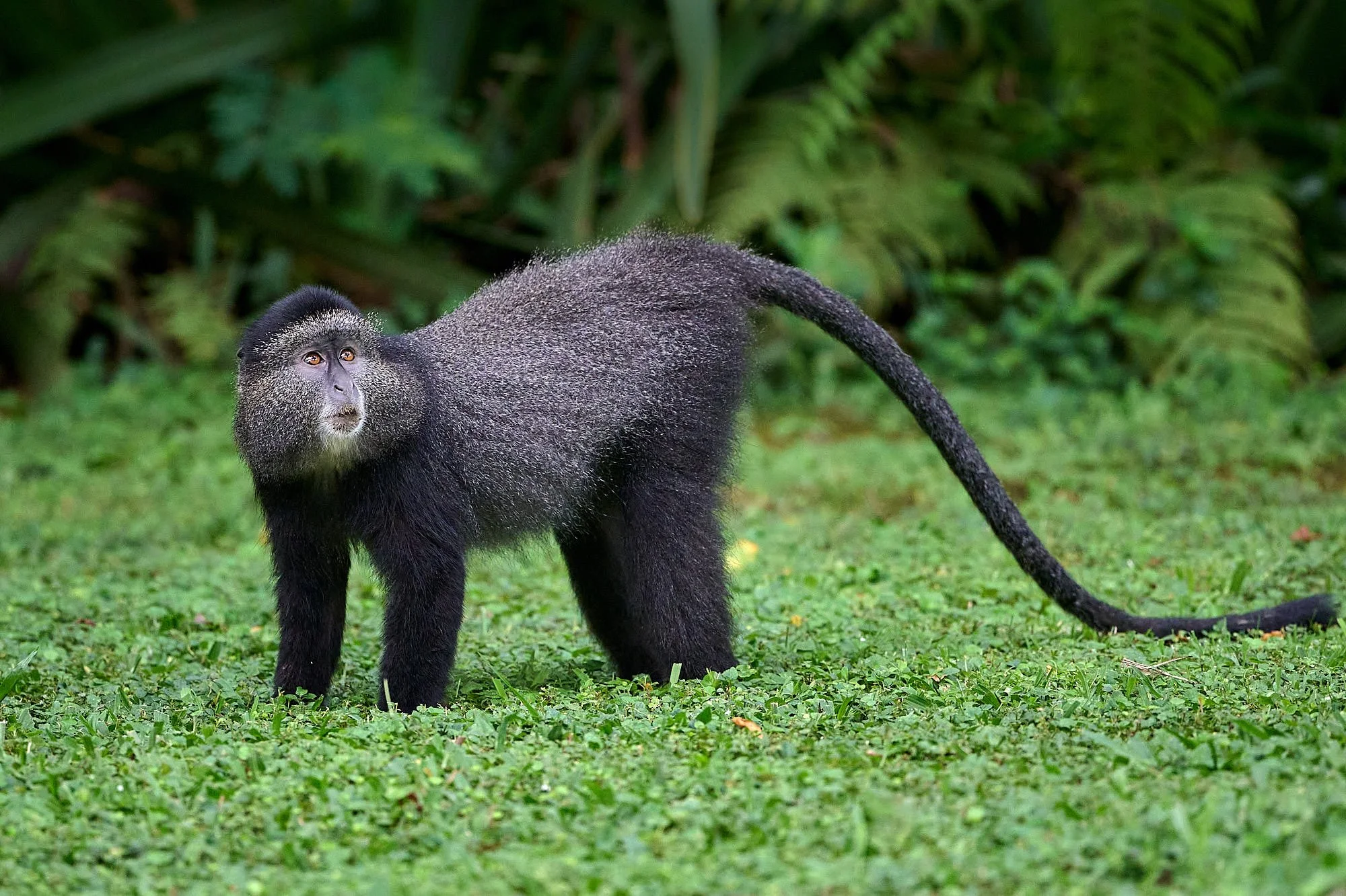 The forest contains olive baboon and black-and-white colobus, red-tailed, blue, and de Brazza’s monkeys. The small mammal community is rich and shows strong affinities to the Congo basin. At least 28 snake species are recorded, including the rare Goldie’s tree cobra and other West African species. There are 2 endangered forest amphibians. The forest's butterfly fauna is very diverse (around 350 species), including some endemics.