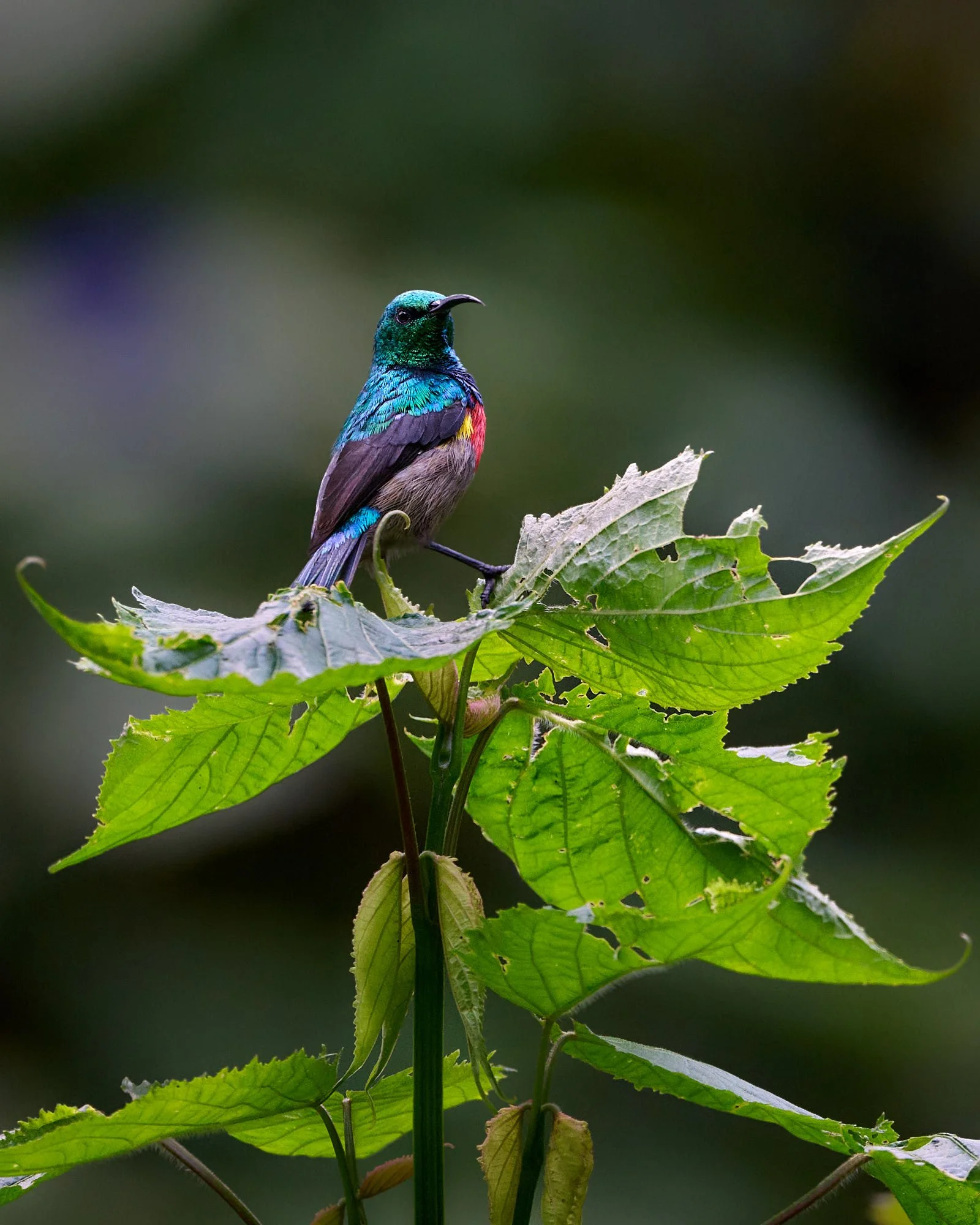 Left: Bar-tailed Trogon; Right: Great Blue Turaco