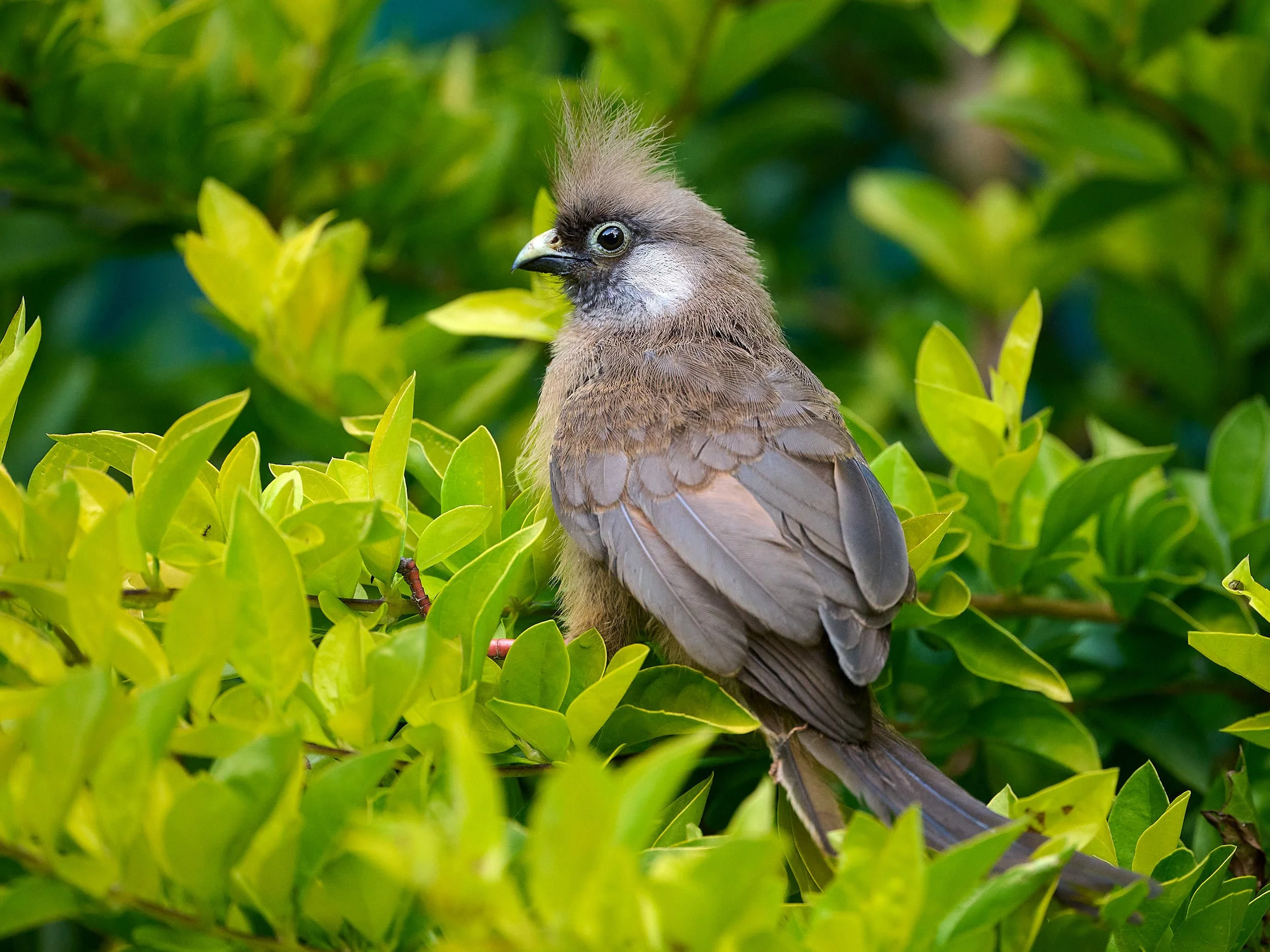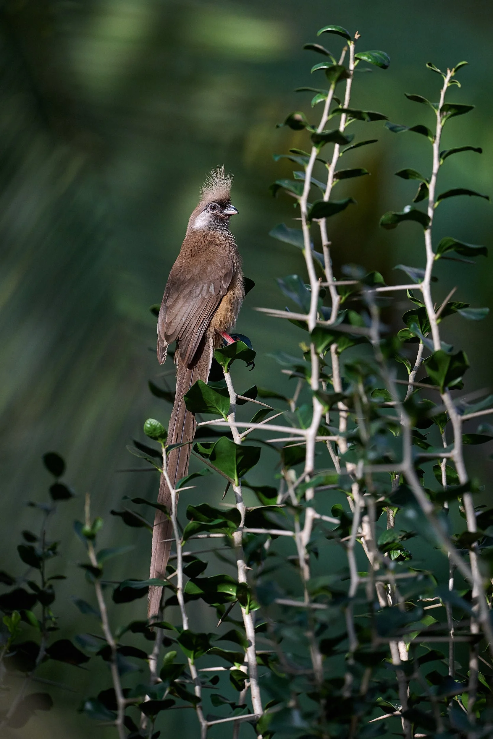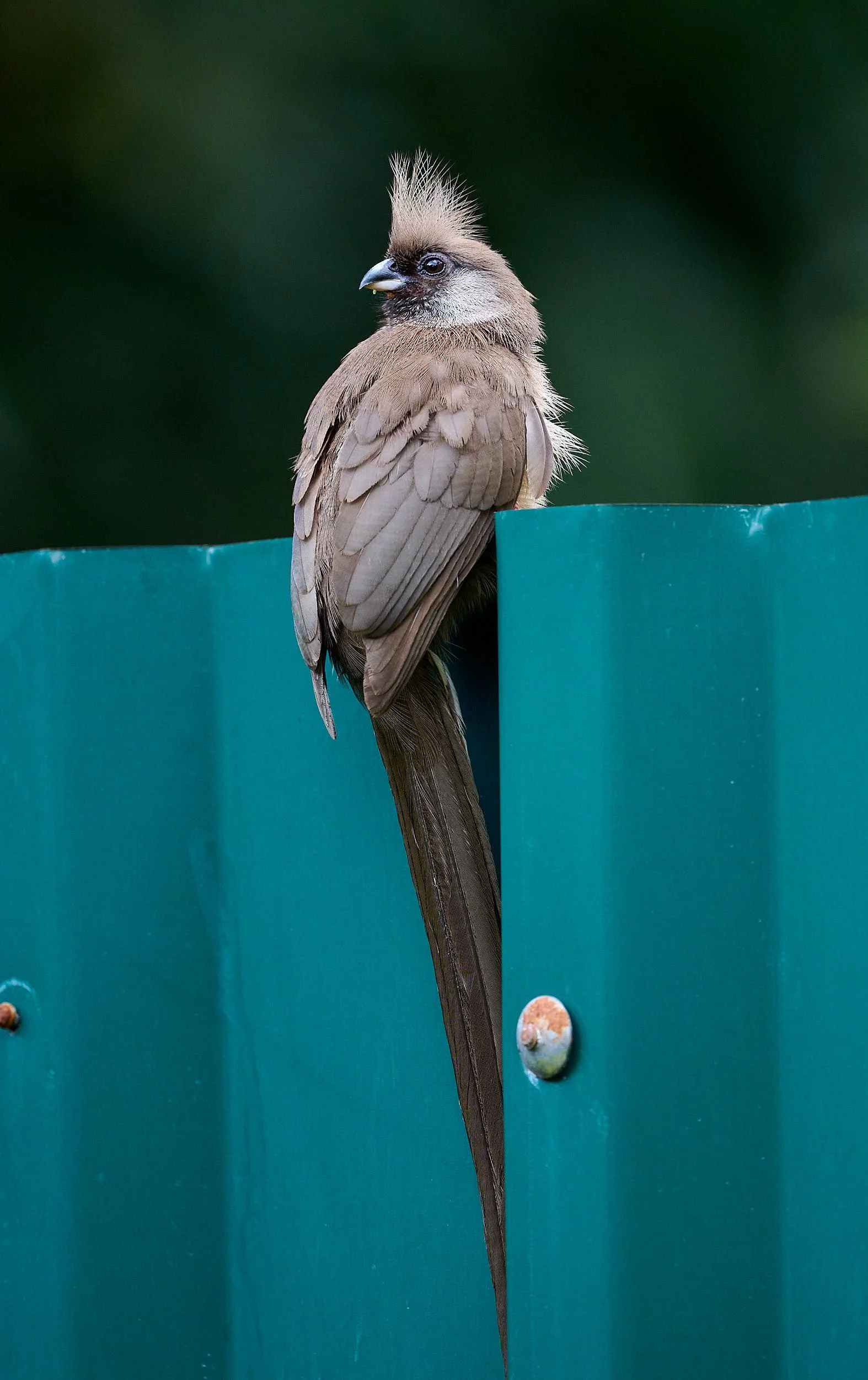 A family of Speckled Mousebirds frequented the garden. Adult bird shown above. The parents were feeding a youngster.