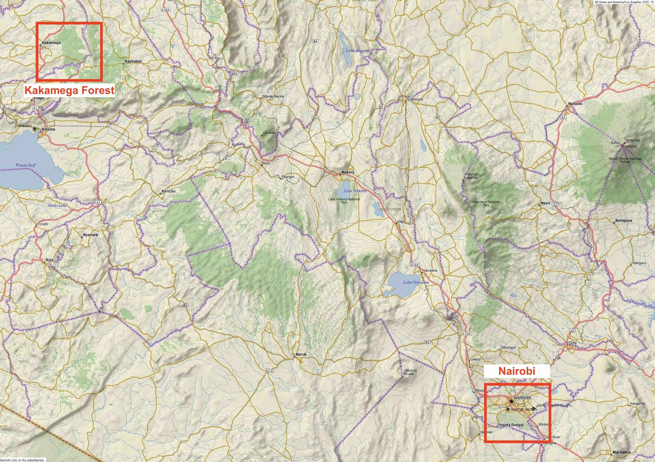 Central and western region of Kenya showing the location of Kakamega Forest relative to Nairobi.