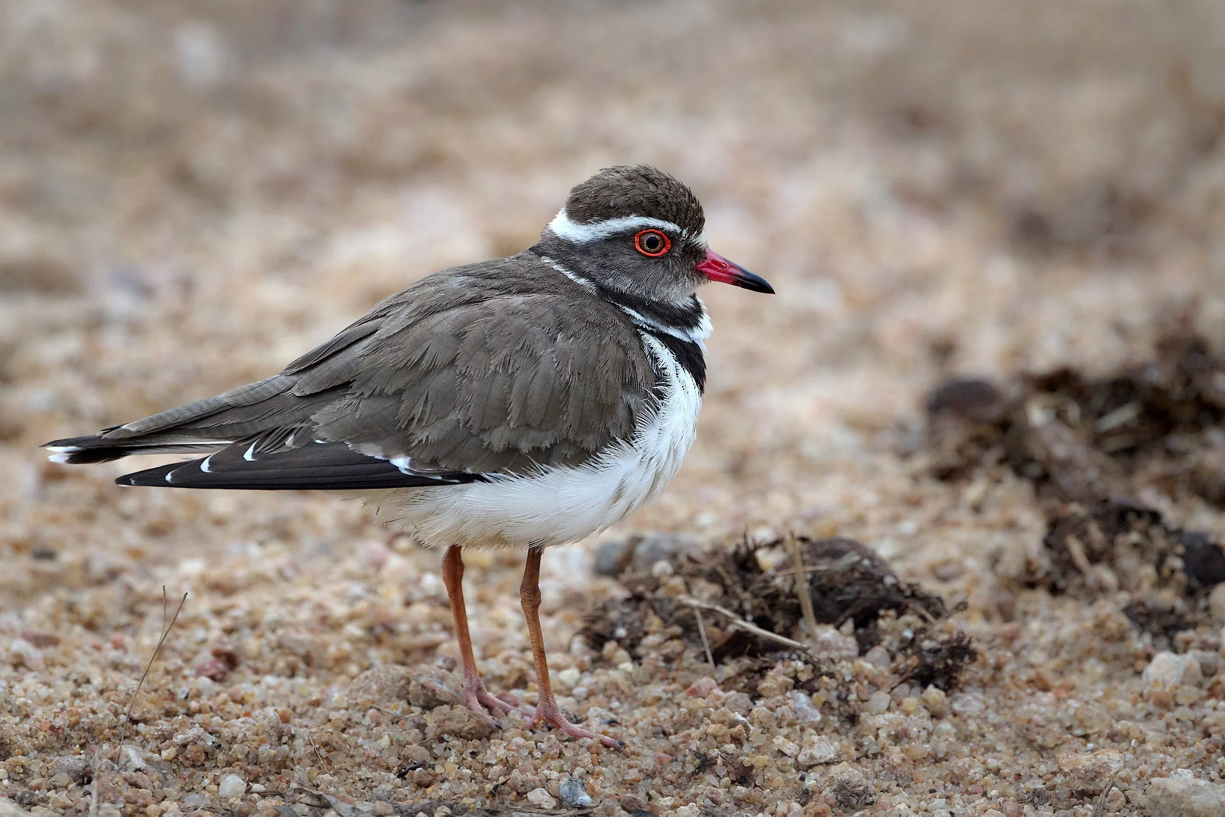 Three-banded Plover working the edge of a water hole.