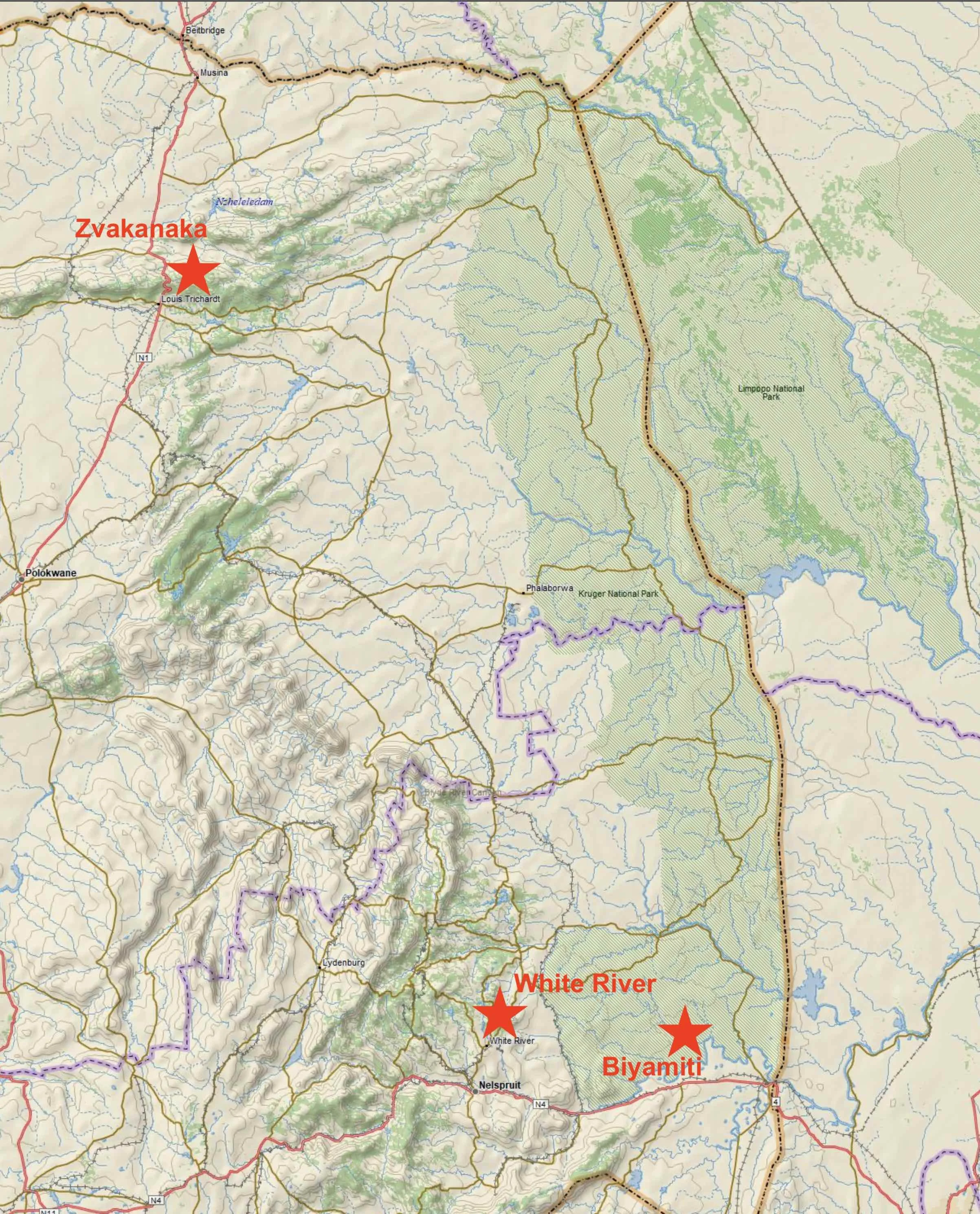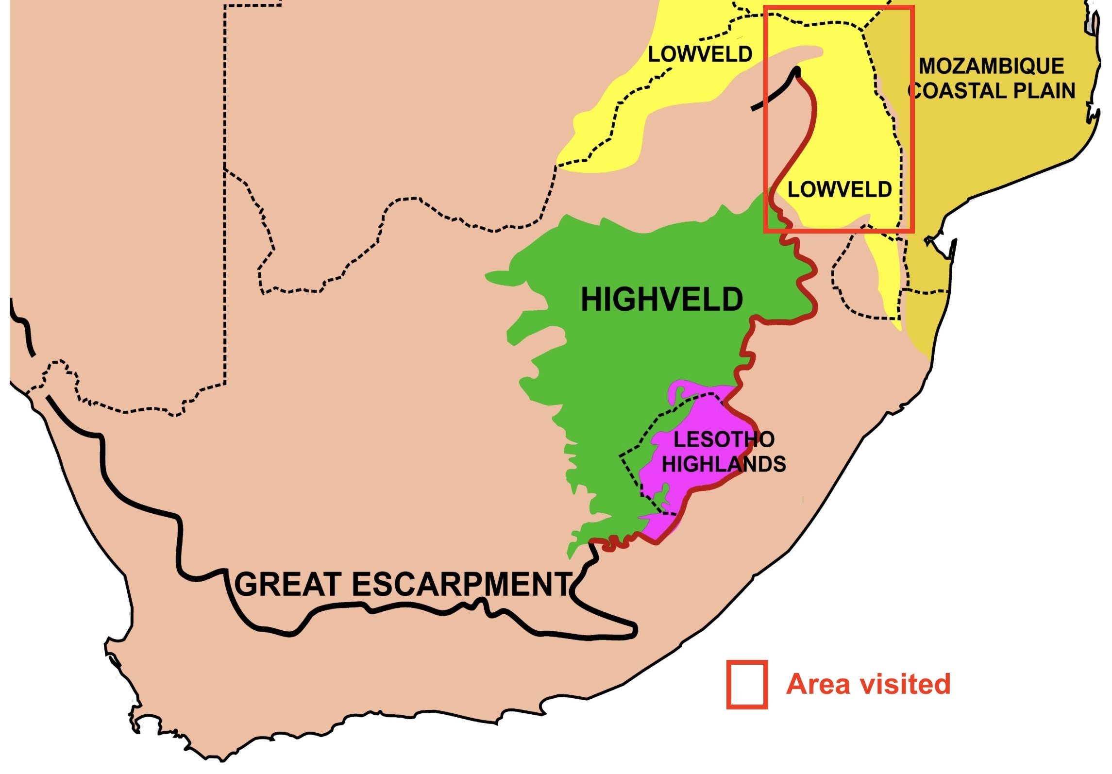 Places we visited within or adjacent to the lowveld.