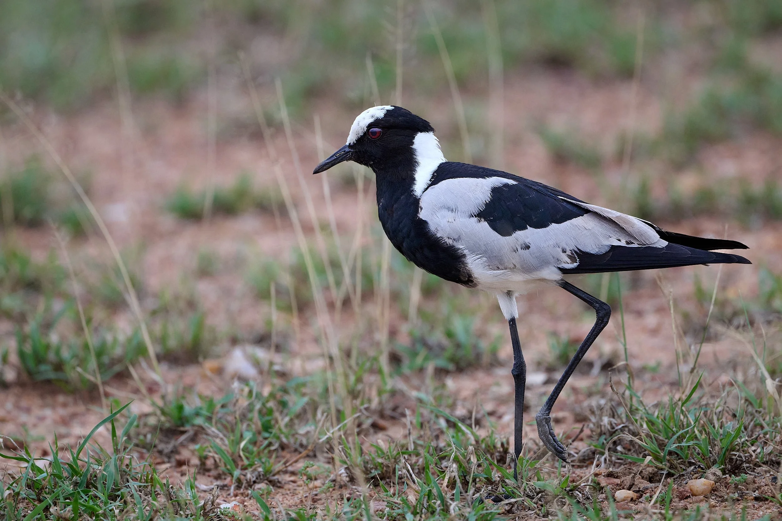 Blacksmith Lapwing. This common resident frequents the shorelines of inland water systems, short grasslands, and mudflats. The common name refers to its call - klink klink klink, like a hammer on an anvil. Who uses anvils these days?