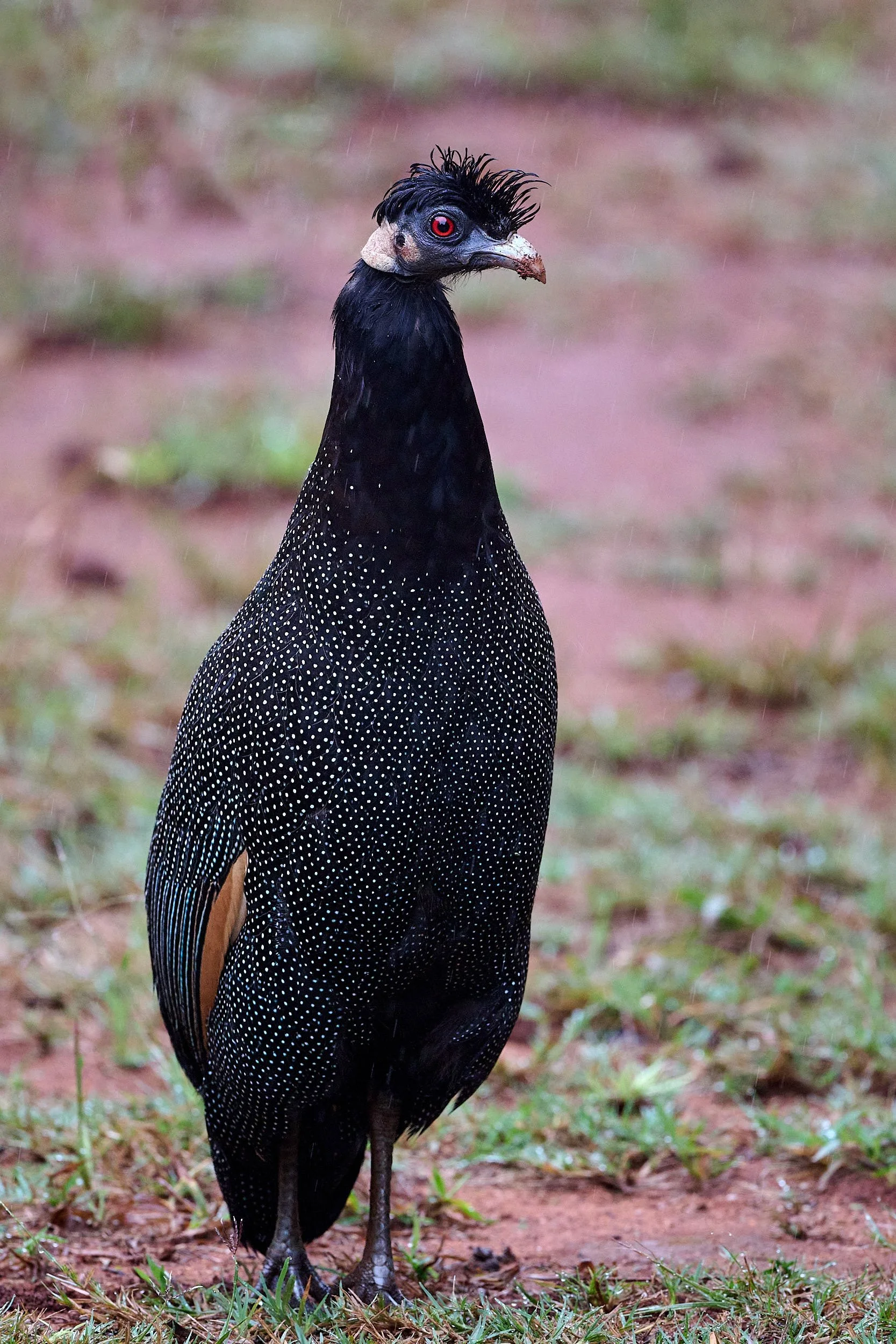 Southern Crested Guineafowl in morning rain.