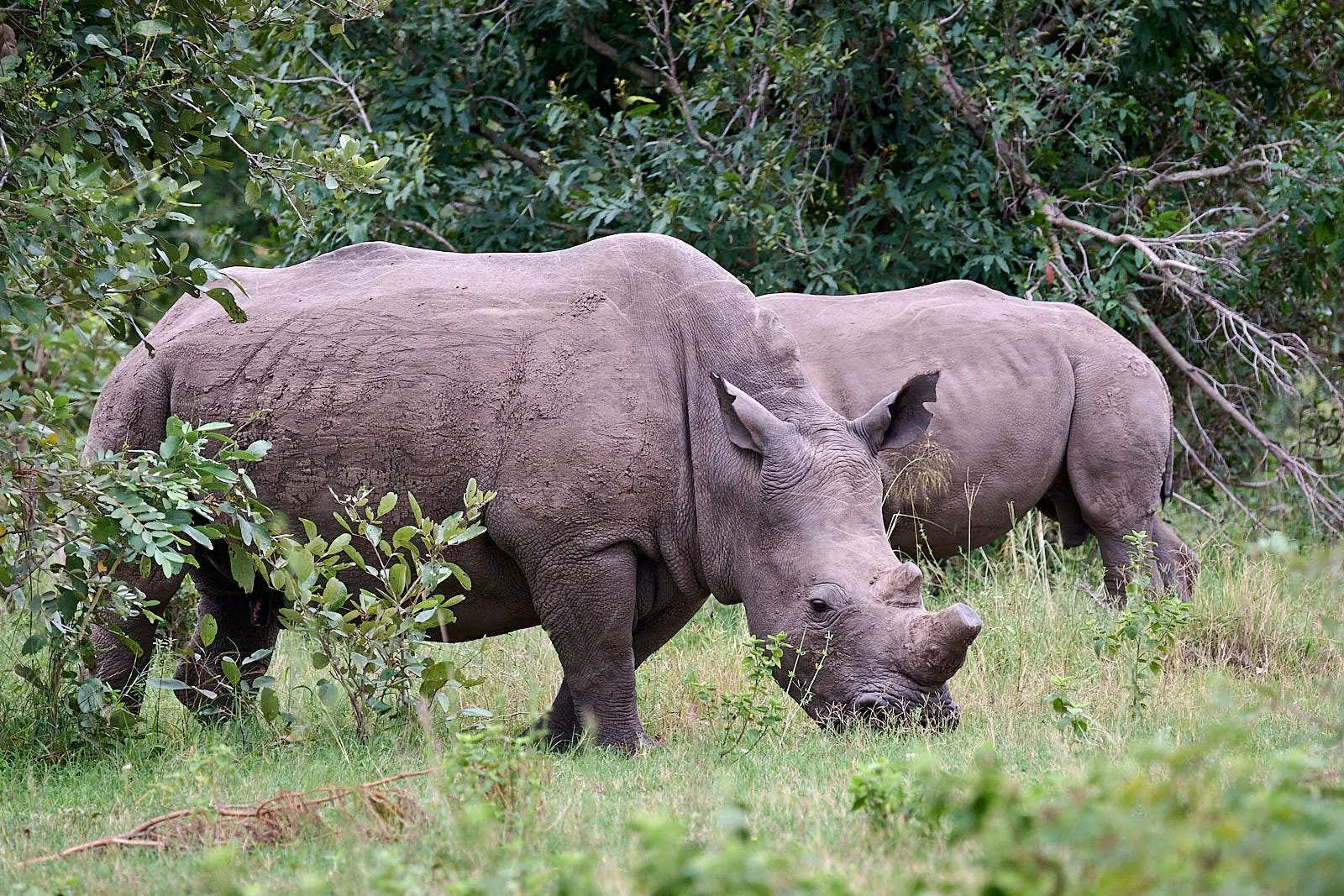 Southern white rhinos - dehorned in the past as an anti-poaching measure.