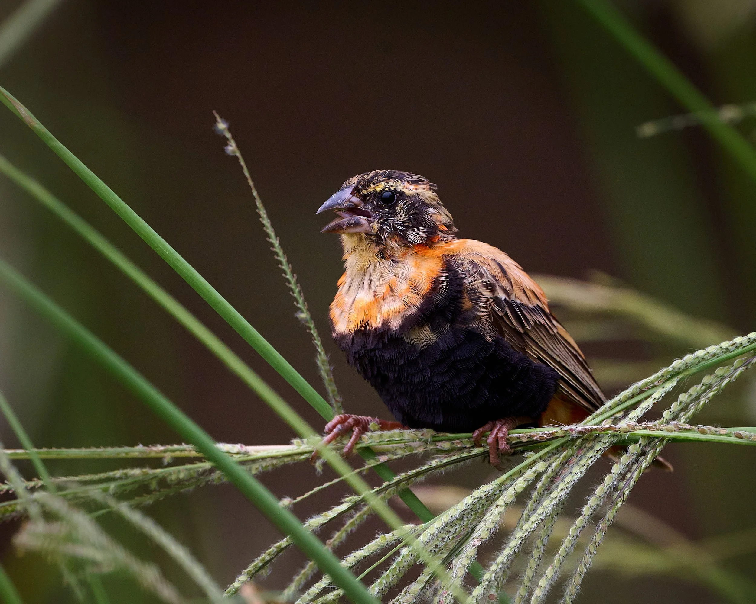 Southern Red Bishop, male in transitional plumage