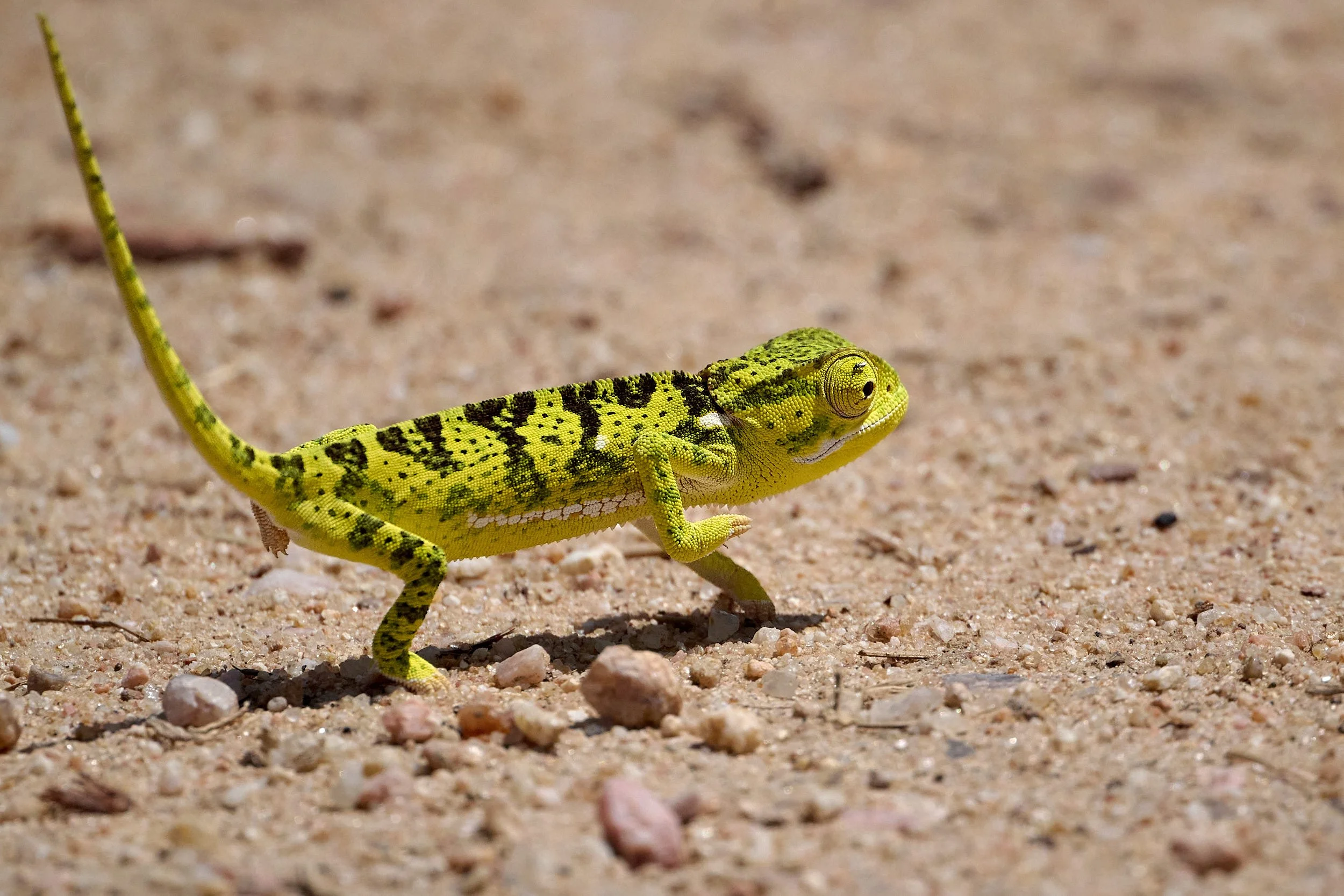 The flap-neck chameleon is native to sub-Saharan Africa and is the chameleon one is most likely to encounter in the lowveld. They have many natural predators which include arboreal snakes, larger shrikes and certain raptors.