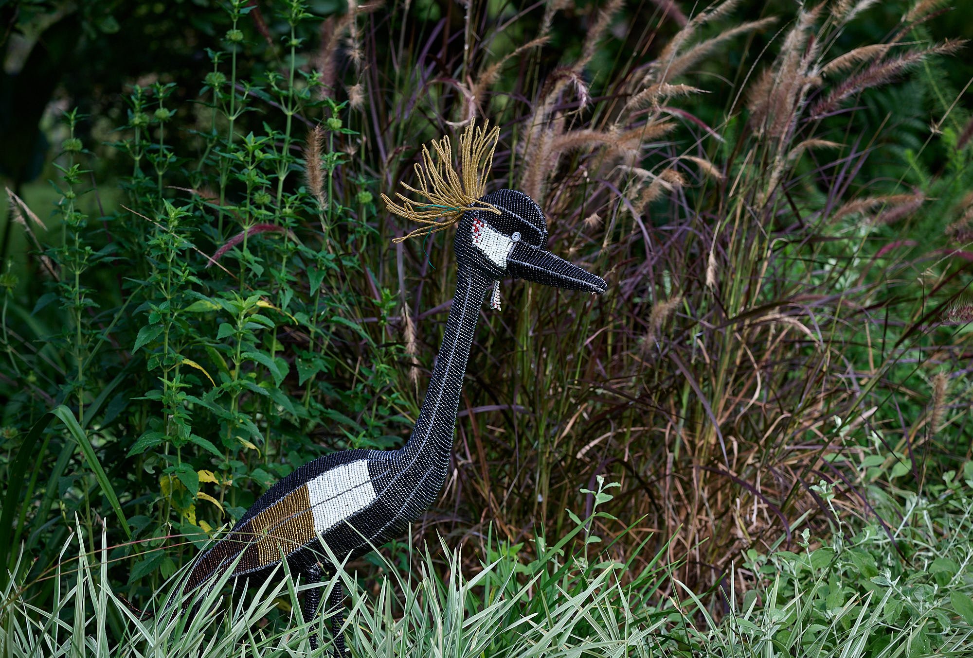 Whimsical beaded Crowned Crane