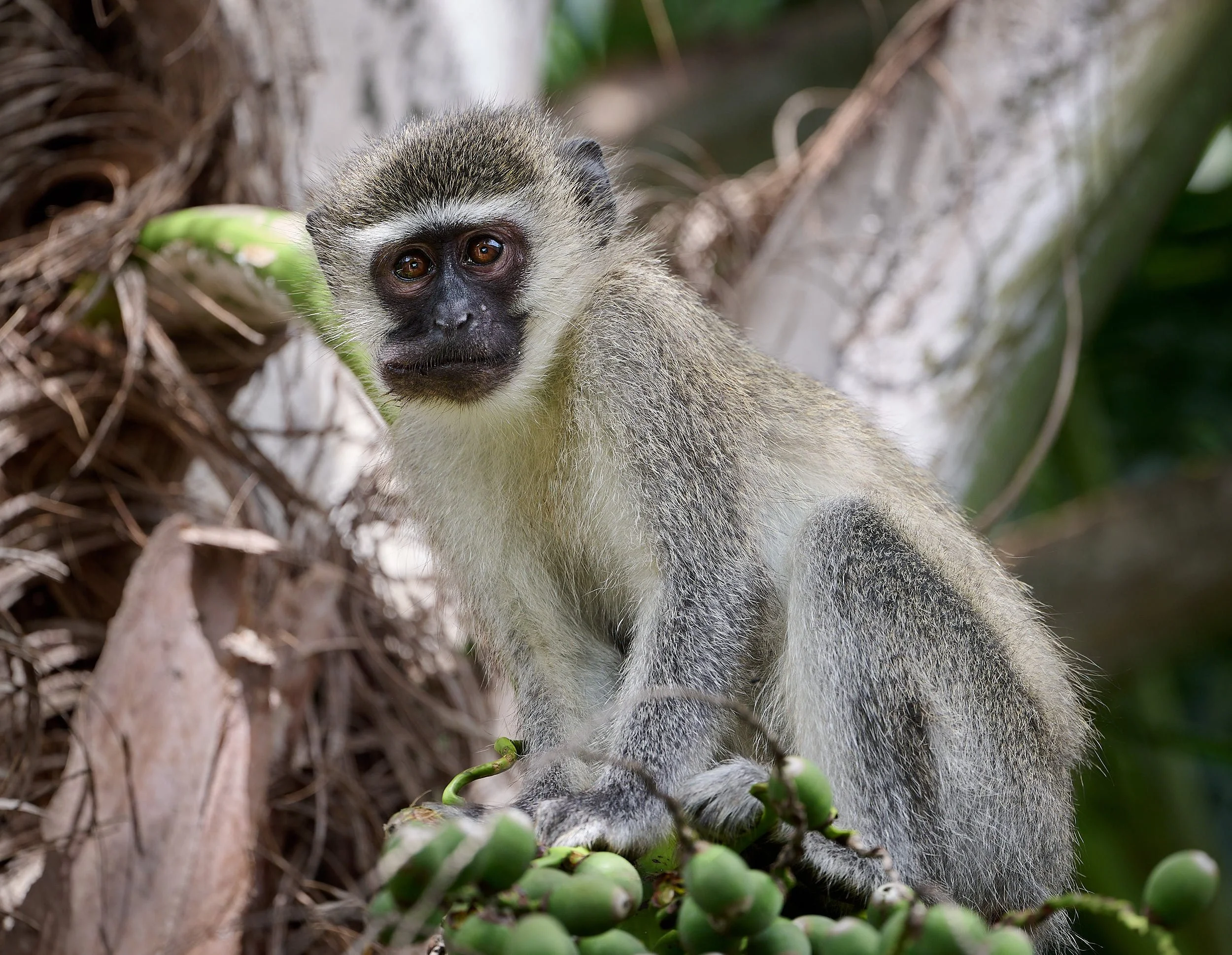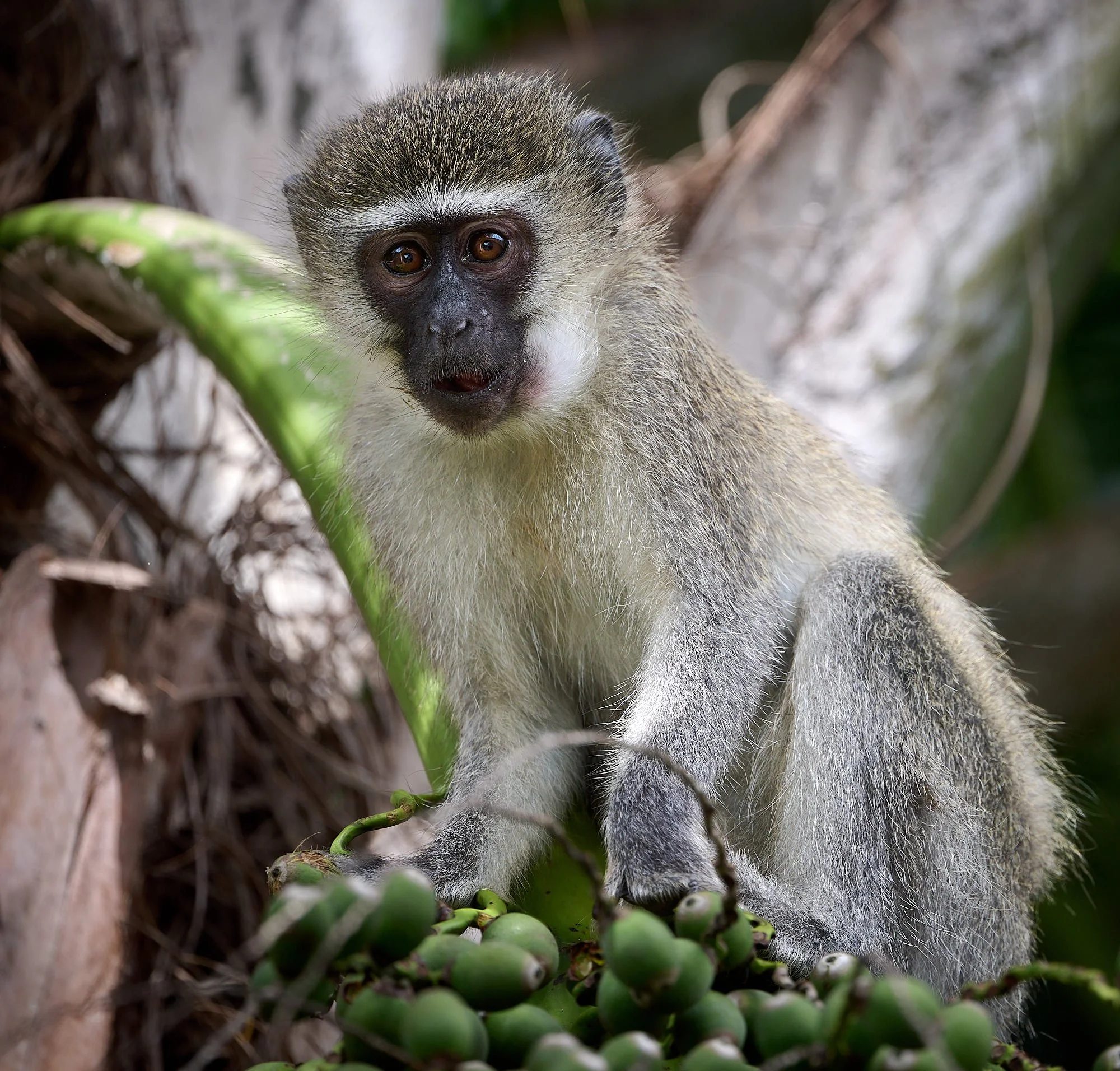 Vervet monkey on palm fruit