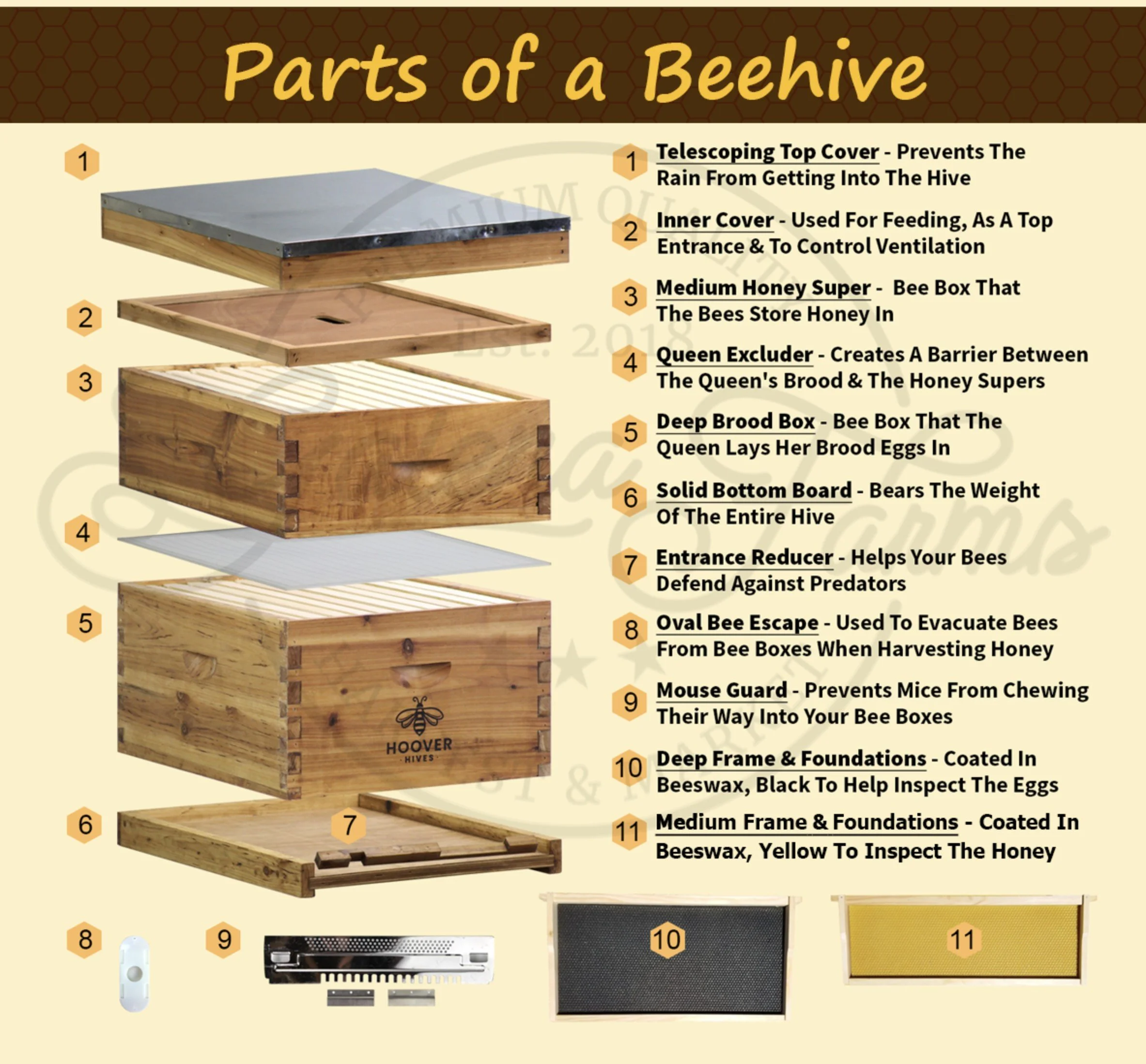 If, like us, you don’t have a clue about bee boxes, here is an illustration explaining the different parts.