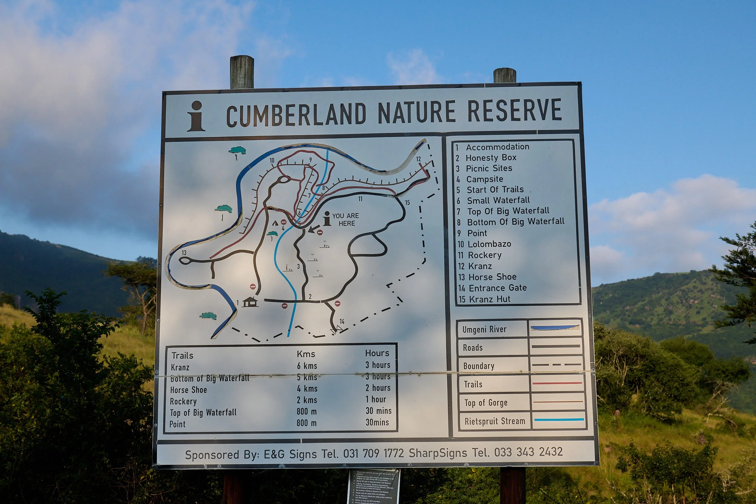 Row #2: Left - At the crest of the Umgeni River gorge; Right - Our accommodation at Cumberland.