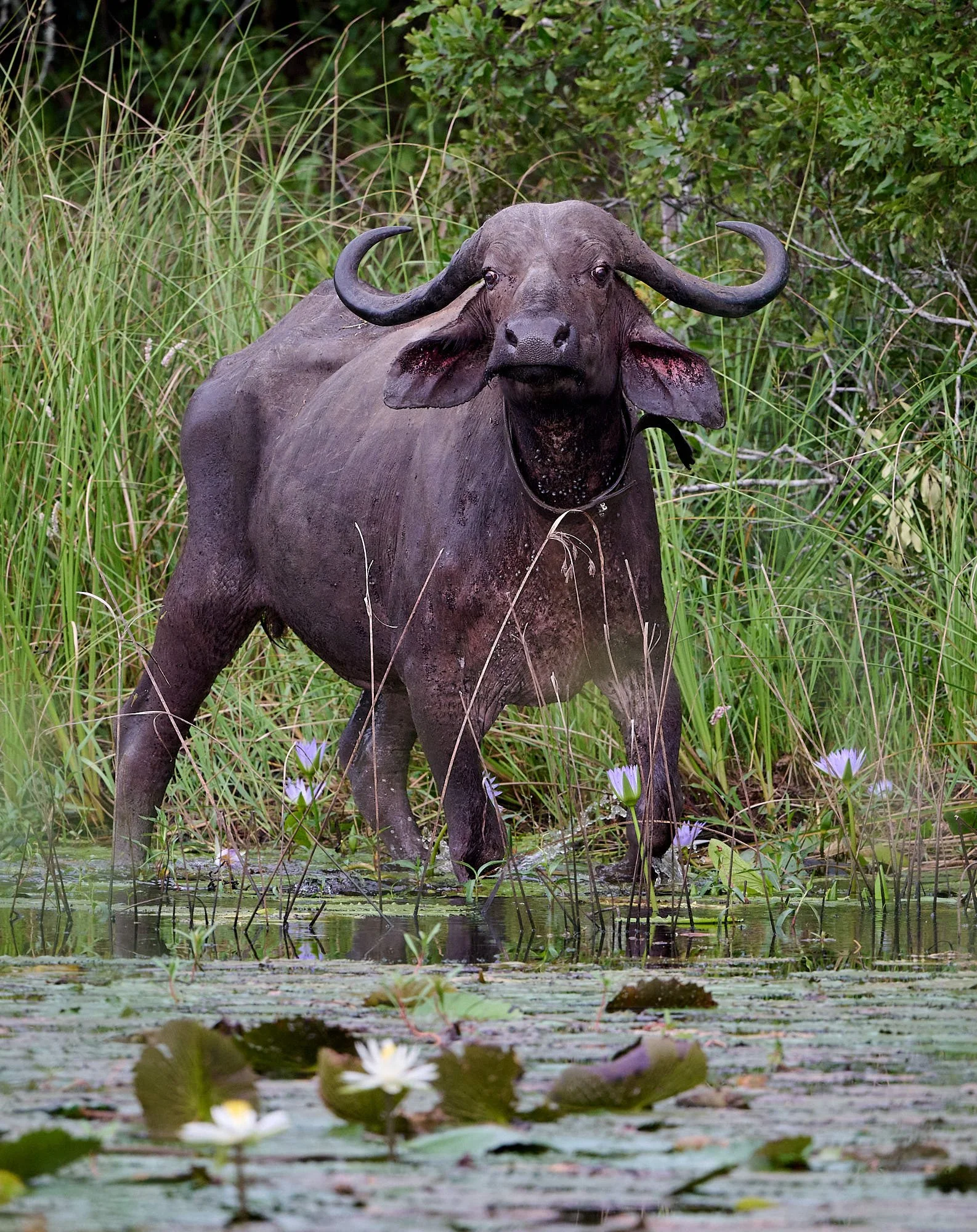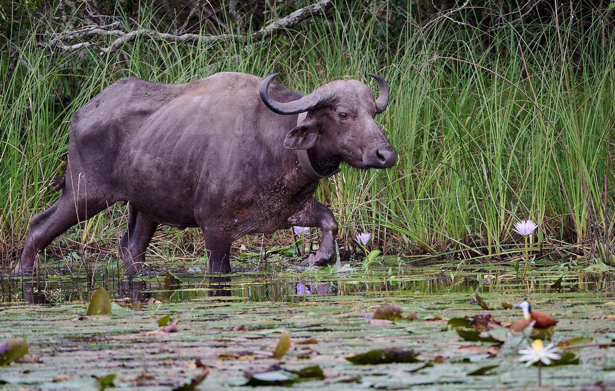Cape buffalo cow with radio collar