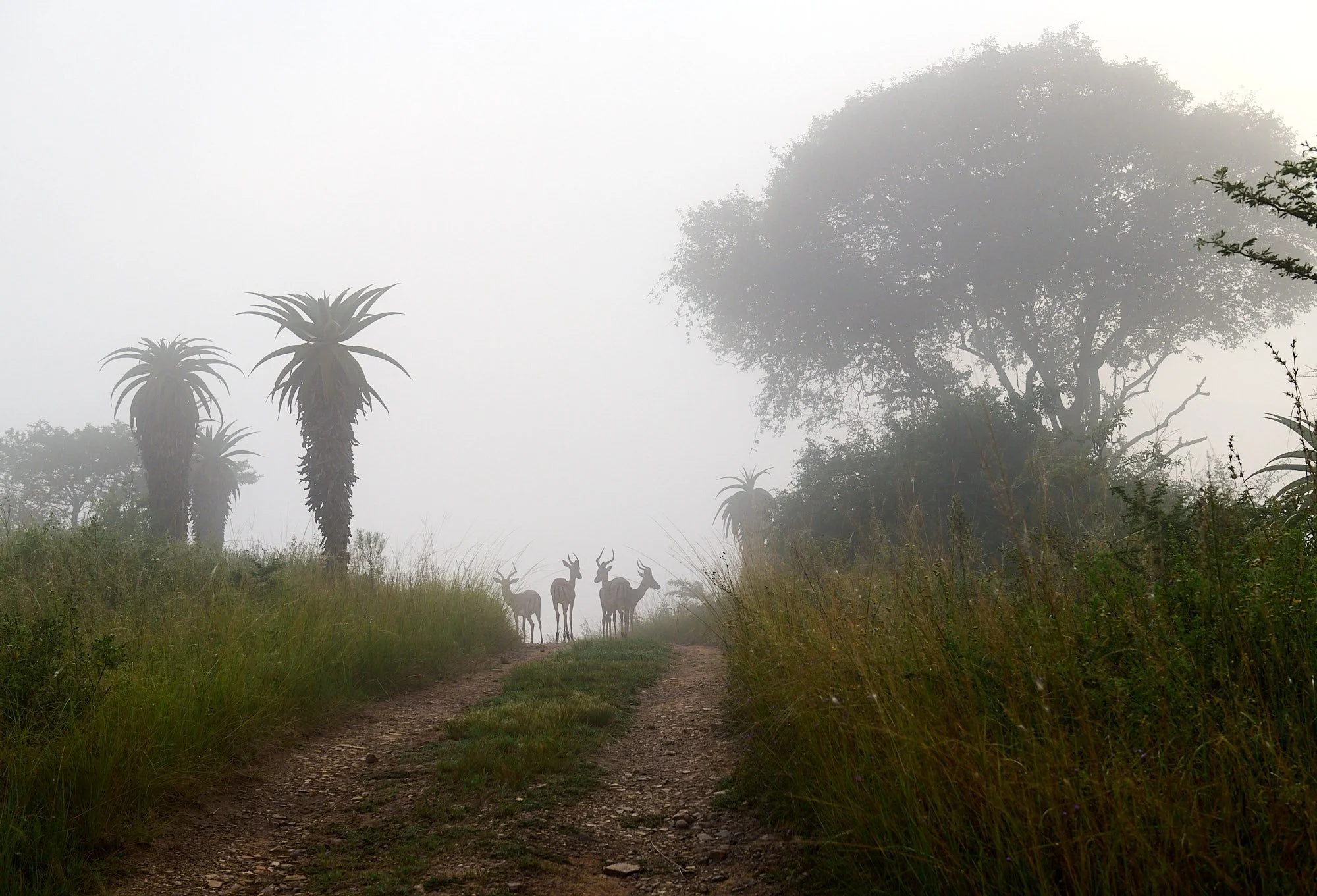 Situated in the elegant, undulating foothills that separate the Drakensberg highlands from coastal plains, the region is often festooned in ethereal early-morning mist. Giraffe, antelopes, warthog, cattle and other mammals are present but there are no dangerous species apart from snakes. Hiking is allowed and we wandered through an interesting mix of habitats; including savanna, grassland, wetland and riverine thicket.