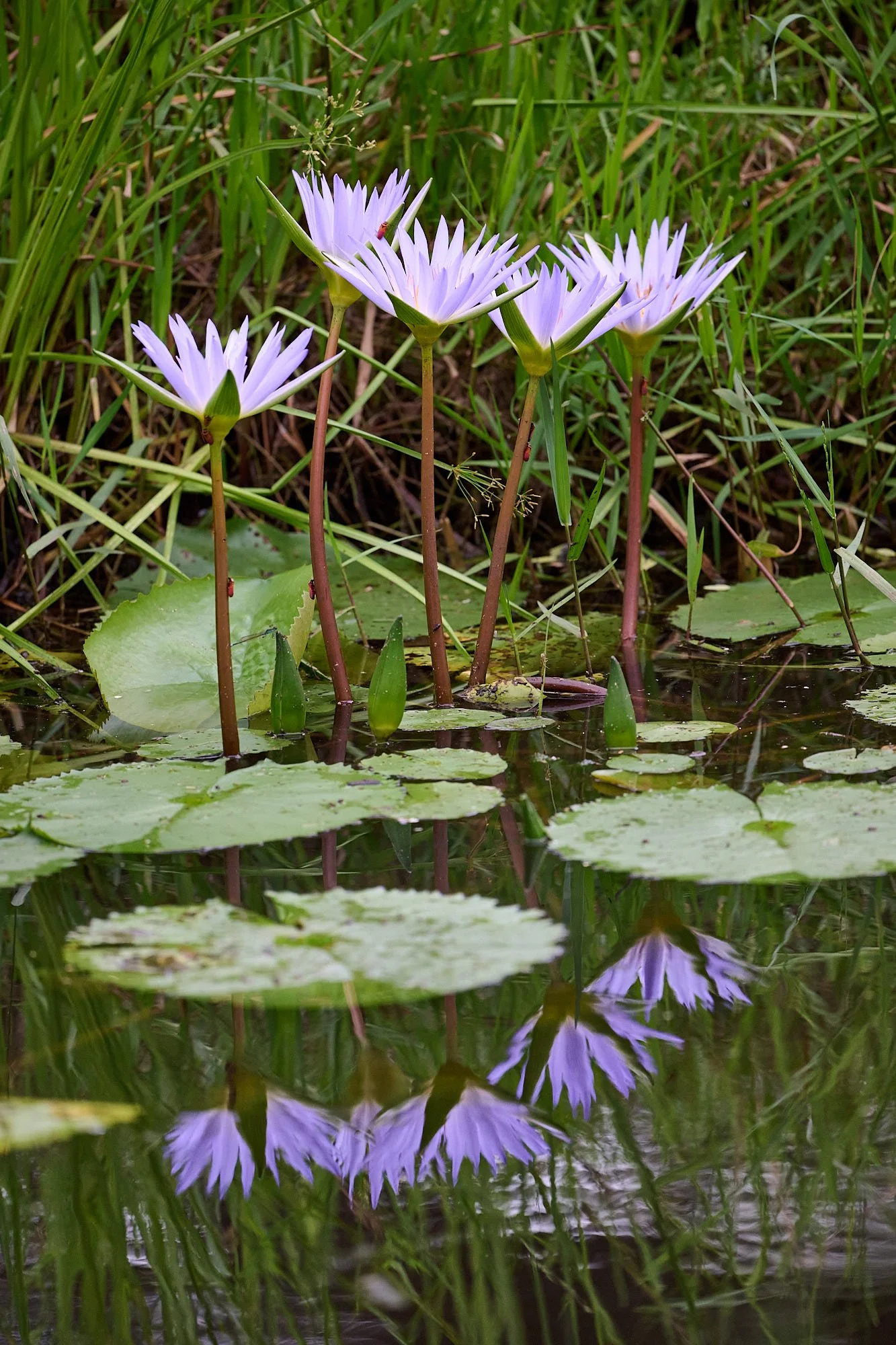 Nymphaea nouchali var. caerulea is an aquatic plant of freshwater lakes, pools and rivers, naturally found throughout most of the eastern half of Africa. It is associated with a snail species that is one of the main hosts of the pathogen causing human schistosomiasis (bilharzia).