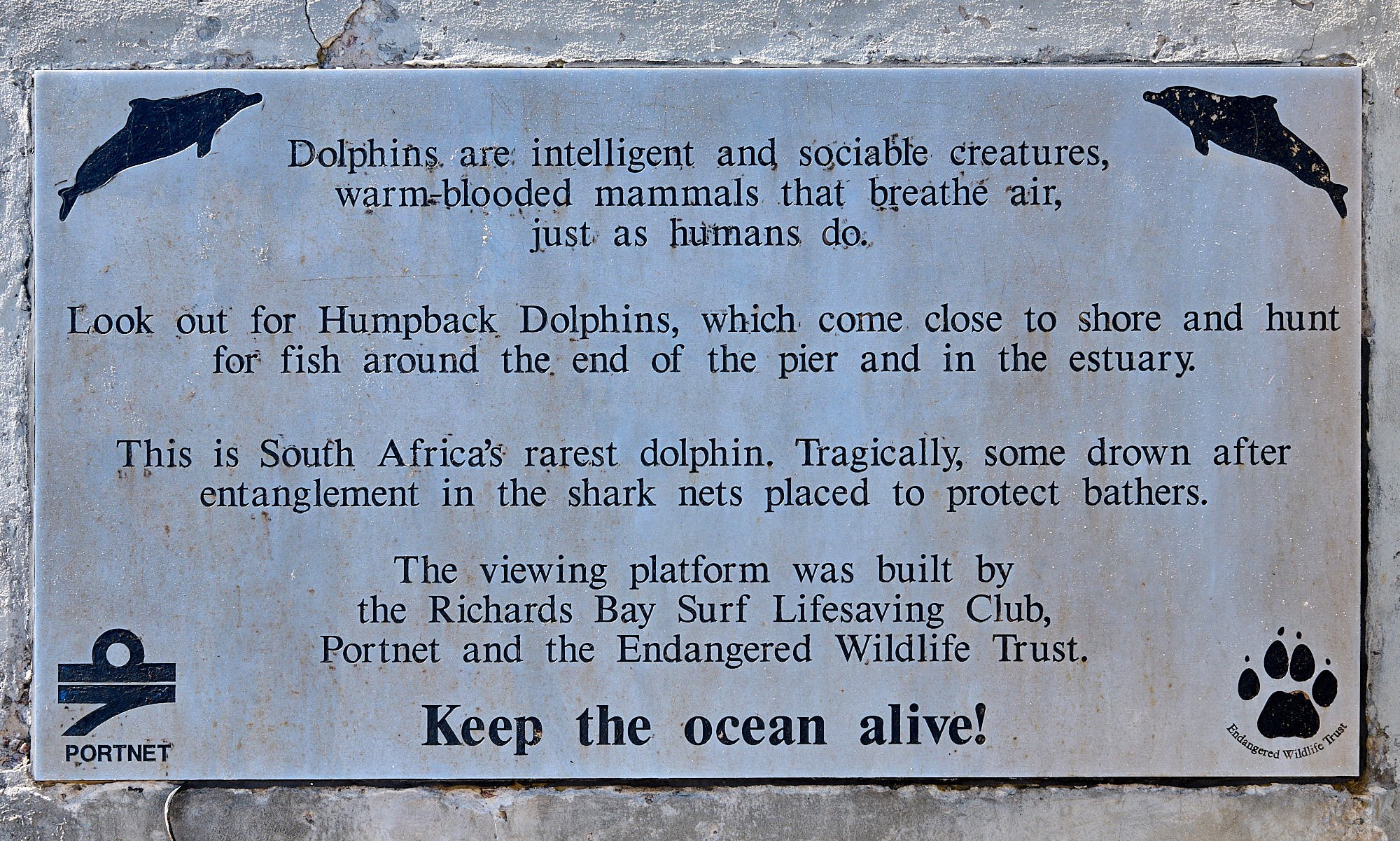 Walking out along the north groyne, we encountered Dave Savides, who has for years monitored Indian Ocean humpback dolphins (Sousa. plumbea). The species is found in the relatively shallow nearshore waters of the Indian Ocean from the southwestern tip of South Africa eastward to Myanmar.
