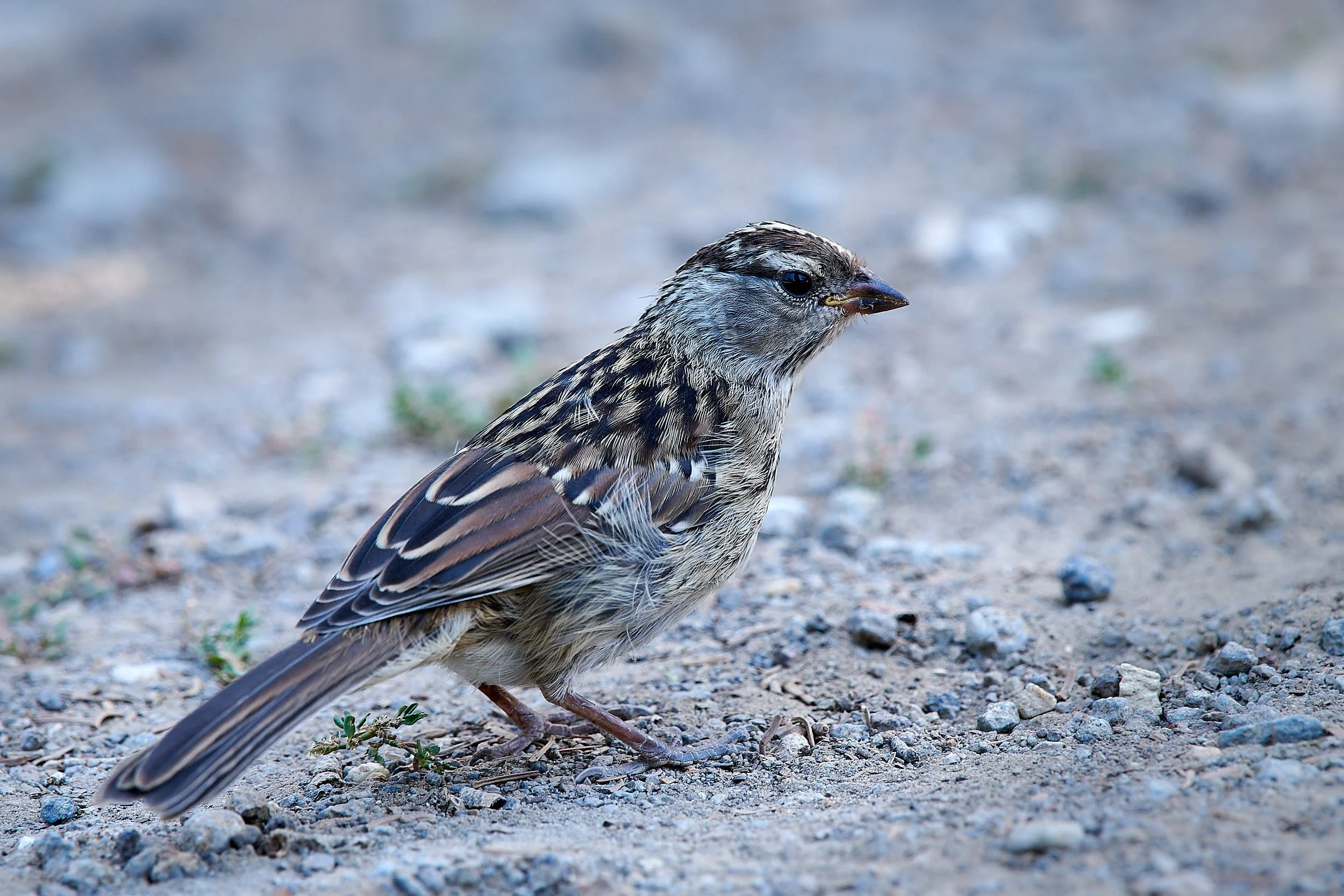 This juvenile sparrow harvested grass shoots around camp.