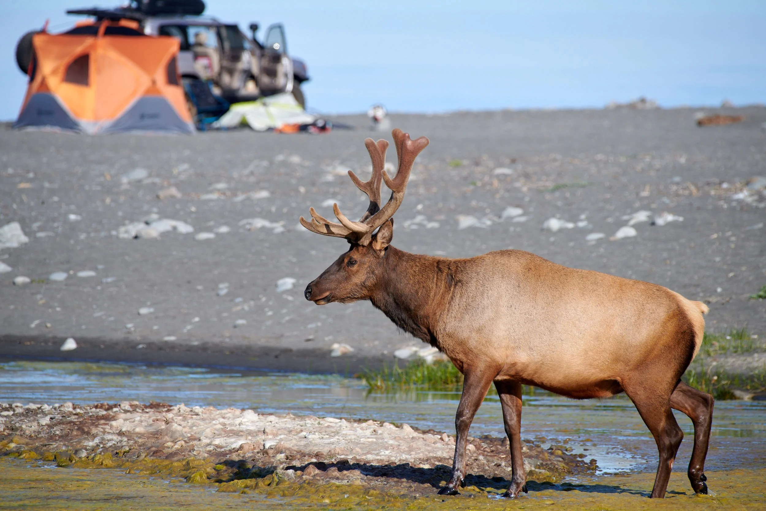 The park provides sanctuary for a small herd of Roosevelt elk that have survived the relentless hunting of earlier decades. Two bulls visited the campground.