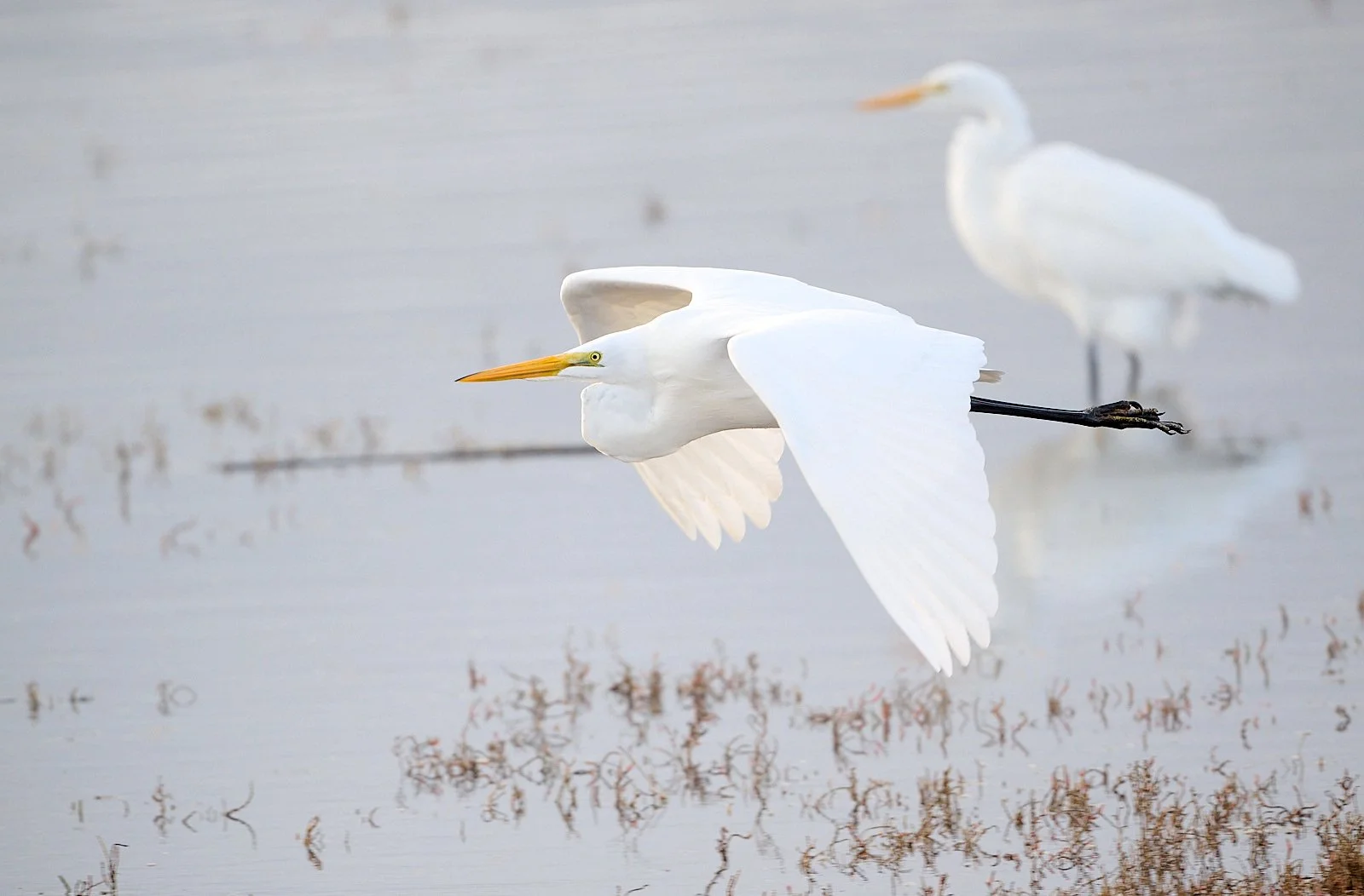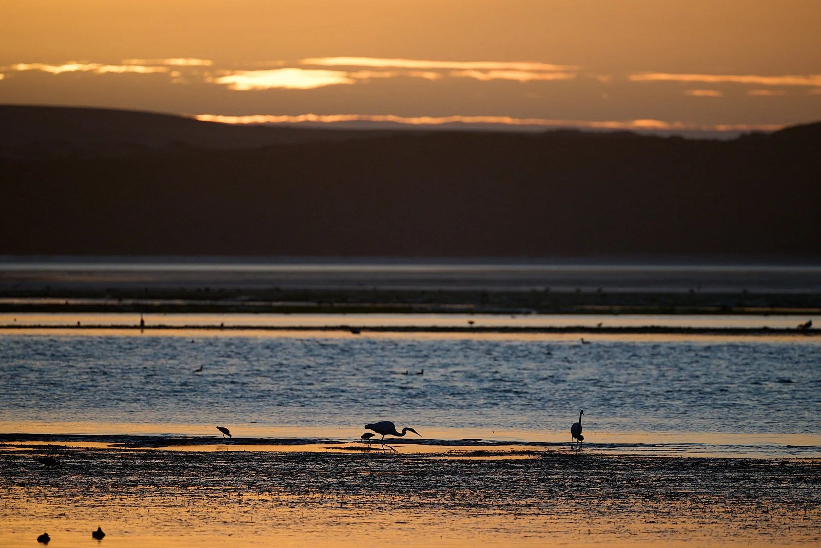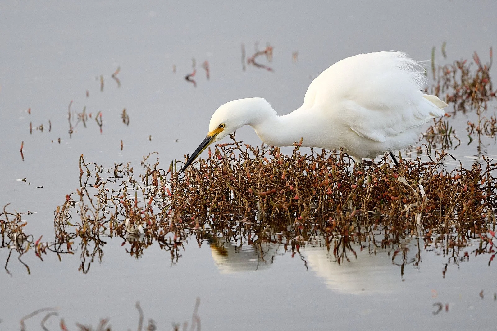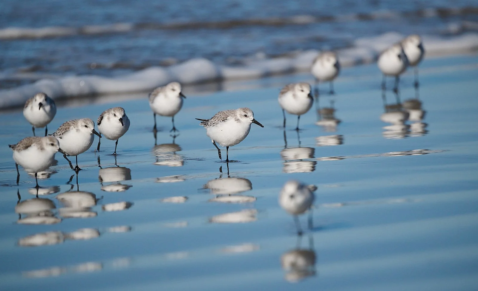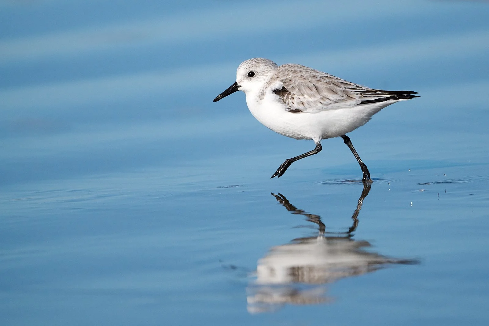 Sanderling searching for snacks that became exposed by a horse’s hoof print.