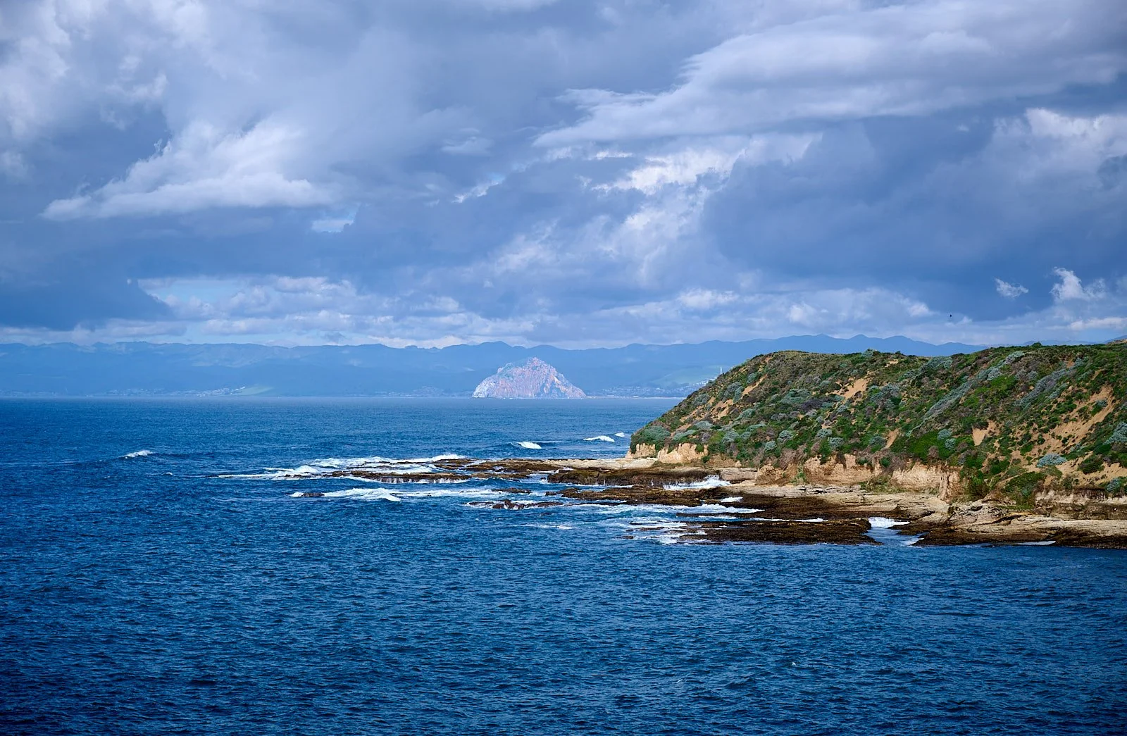 Morro Rock, viewed from the south at Montaña de Oro State Park.