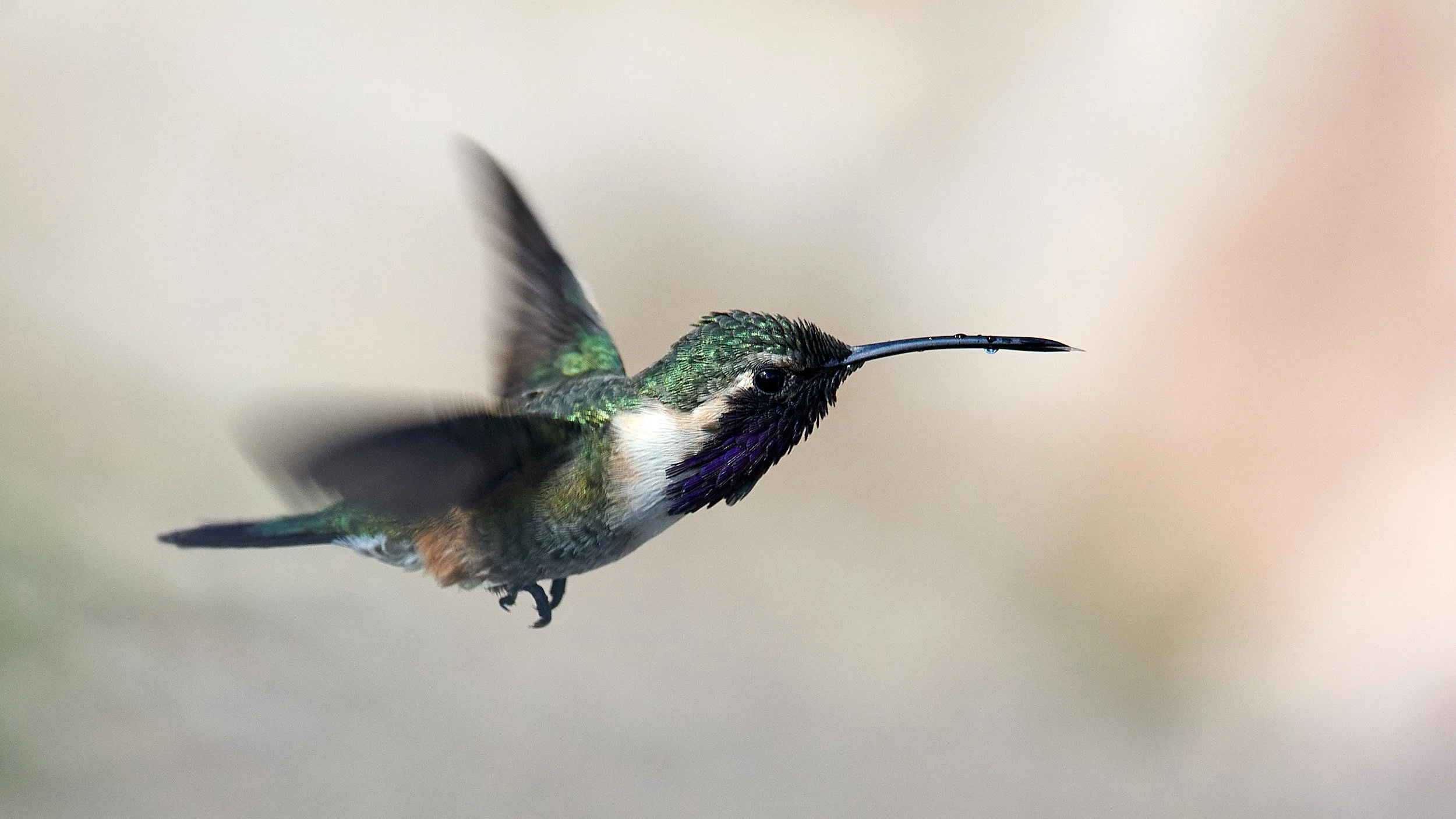 At Ash Canyon, a male Lucifer Hummingbird bathed in water and then dried himself by shaking his wings and grooming.