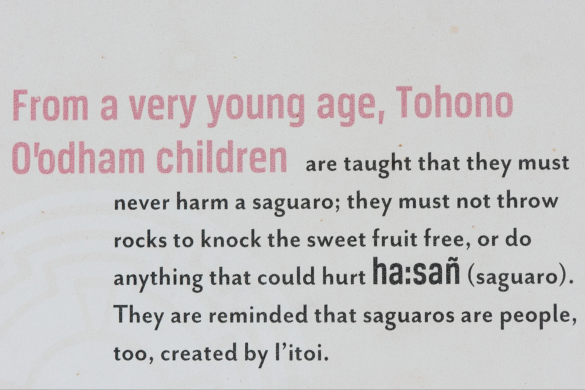 Sometimes, saguaro arms bend downwards. It is thought this happens when the plant’s fibrous skeleton is weakened by a hard frost, causing the arm to rotate and droop.