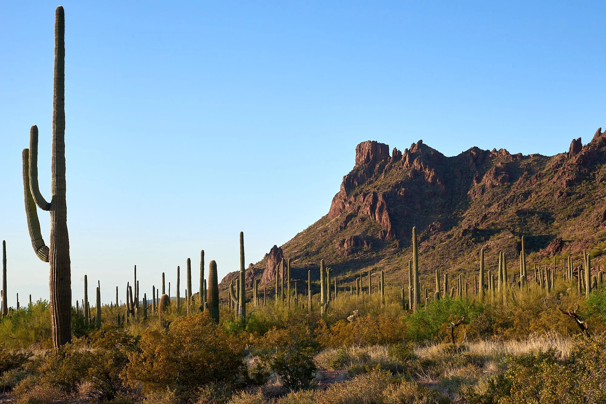 Right: Saguaro in morning light at Kofa National Wildlife Refuge.