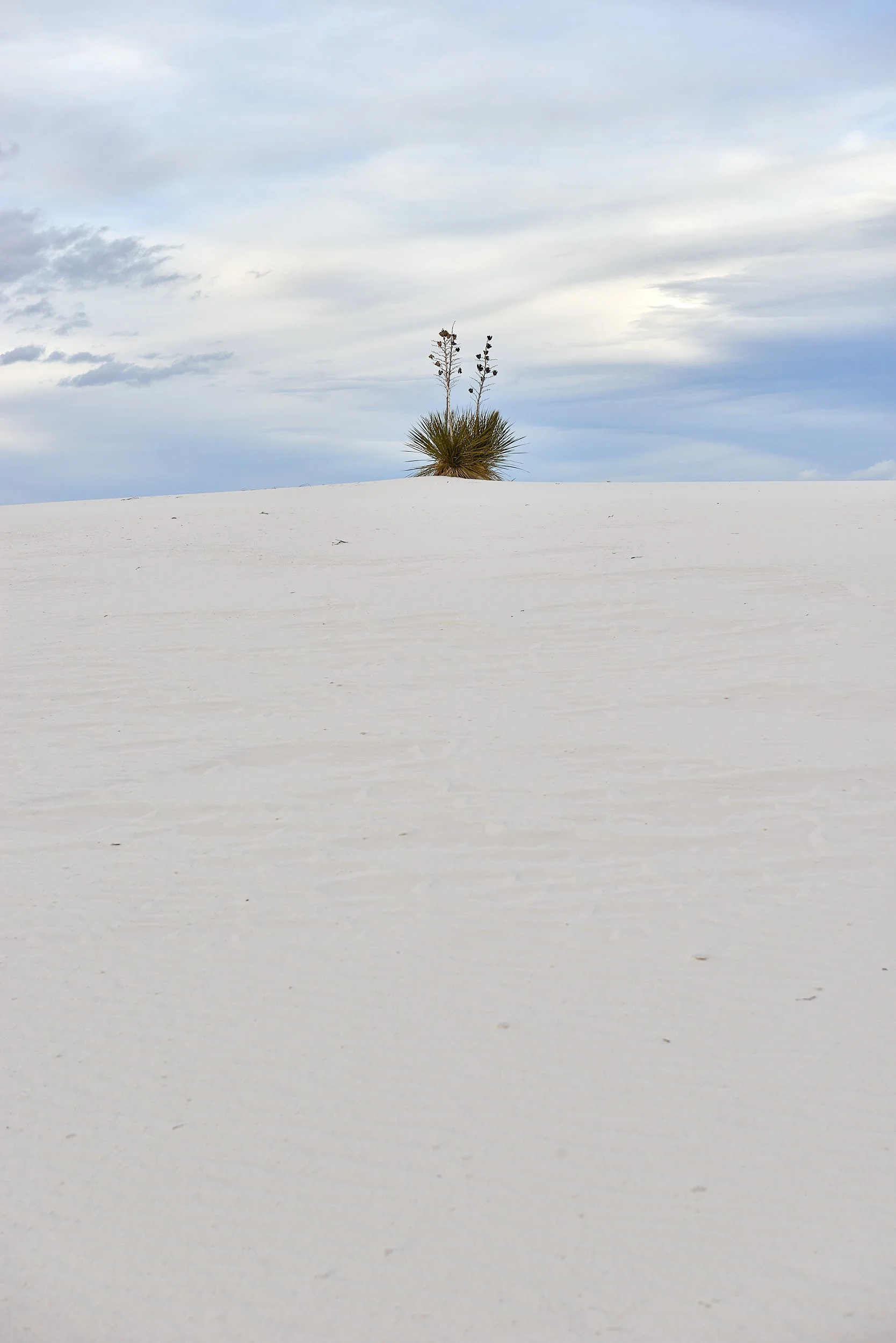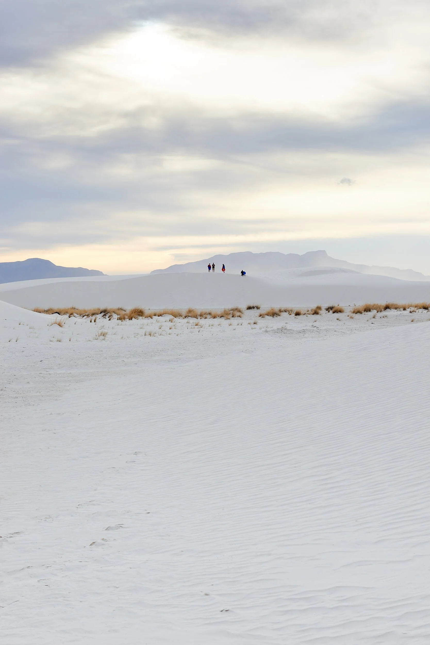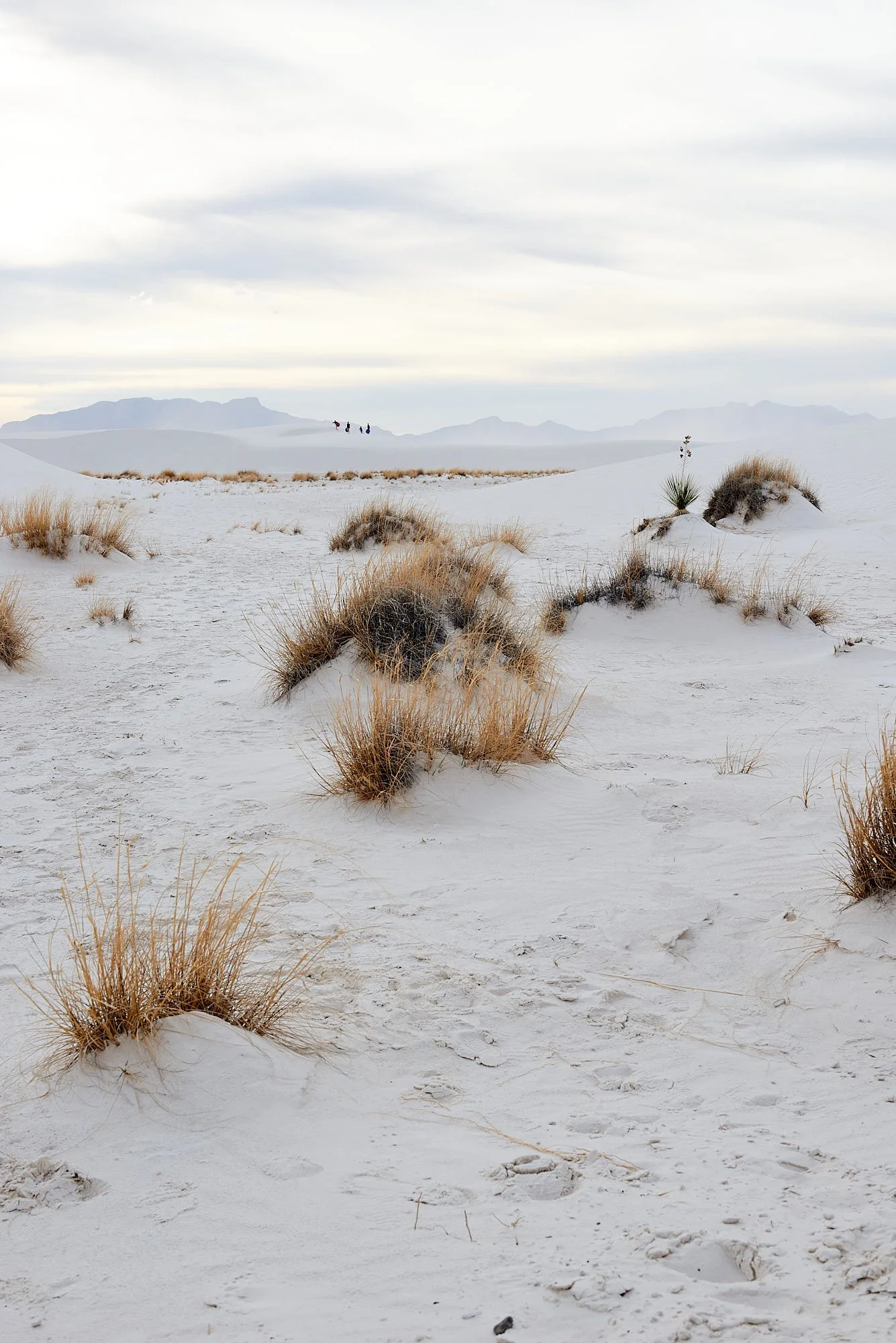 As the climate became warmer and drier, most of Lake Otero dried up. The dry portions of the lakebed became what we know today as Alkali Flat, while the smaller seasonal playa that remained formed modern Lake Lucero. As Lake Otero’s water disappeared gypsum crystals formed on Alkali Flat. The crystals (called selenite) are brittle and fragile. Strong northeast winds carried the smaller pieces, further breaking down the crystals into small grains and polishing them into a brilliant white color. The sand accumulated into today’s white dune fields.