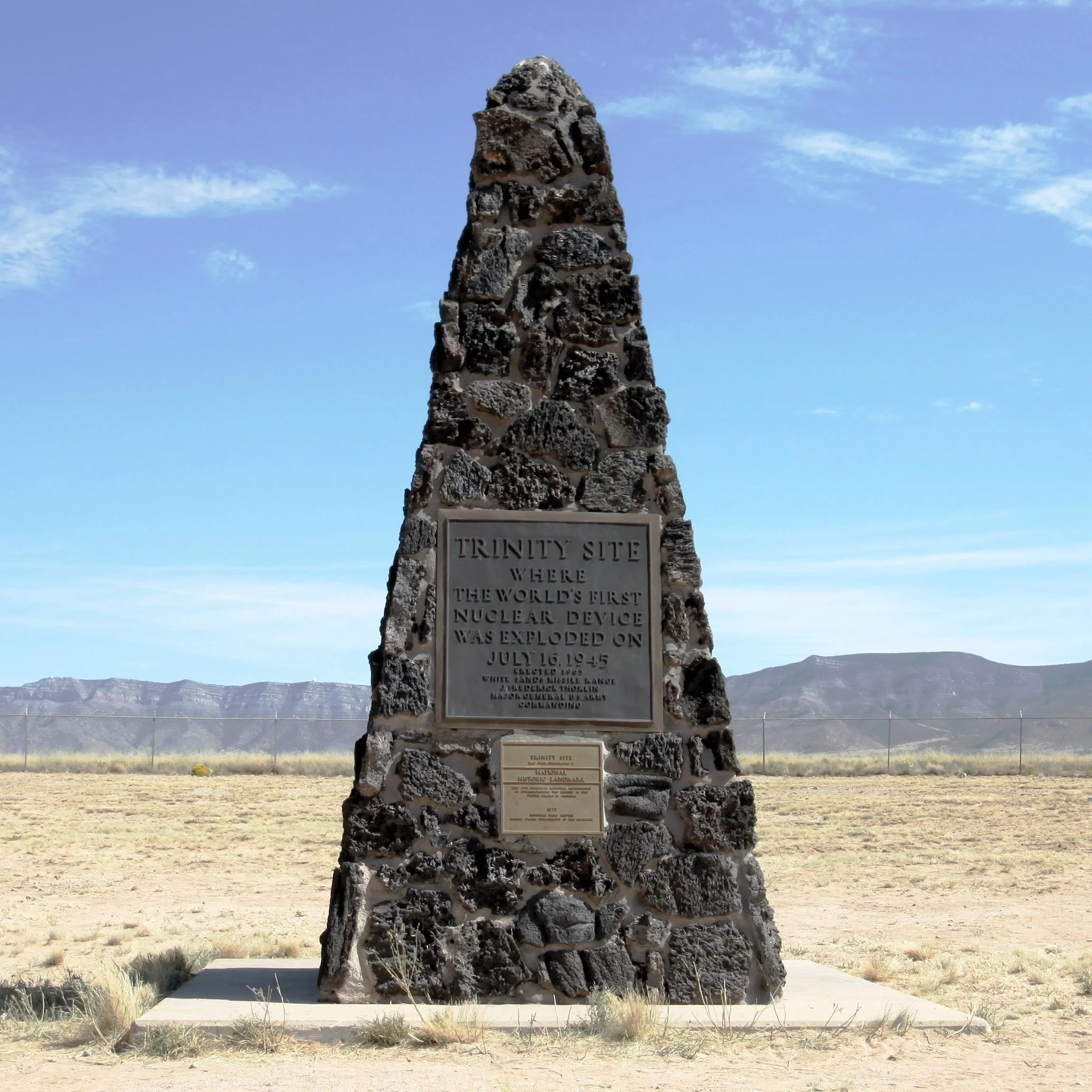 Oliver Lee State Park abuts on the White Sands Missile Range which contains a National Historic Landmark – the site of the first nuclear bomb detonation. It occurred on July 16, 1945, when a plutonium implosion device was tested on the barren Alamogordo plains. Inspired by the poetry of John Donne, J. Robert Oppenheimer code-named the test "Trinity." Hoisted atop a 100-foot tower, the plutonium device, or "Gadget," detonated at precisely 5:30 a.m. over the New Mexico desert, releasing 18.6 kilotons of power, instantly vaporizing the tower and turning the surrounding asphalt and sand into green glass.