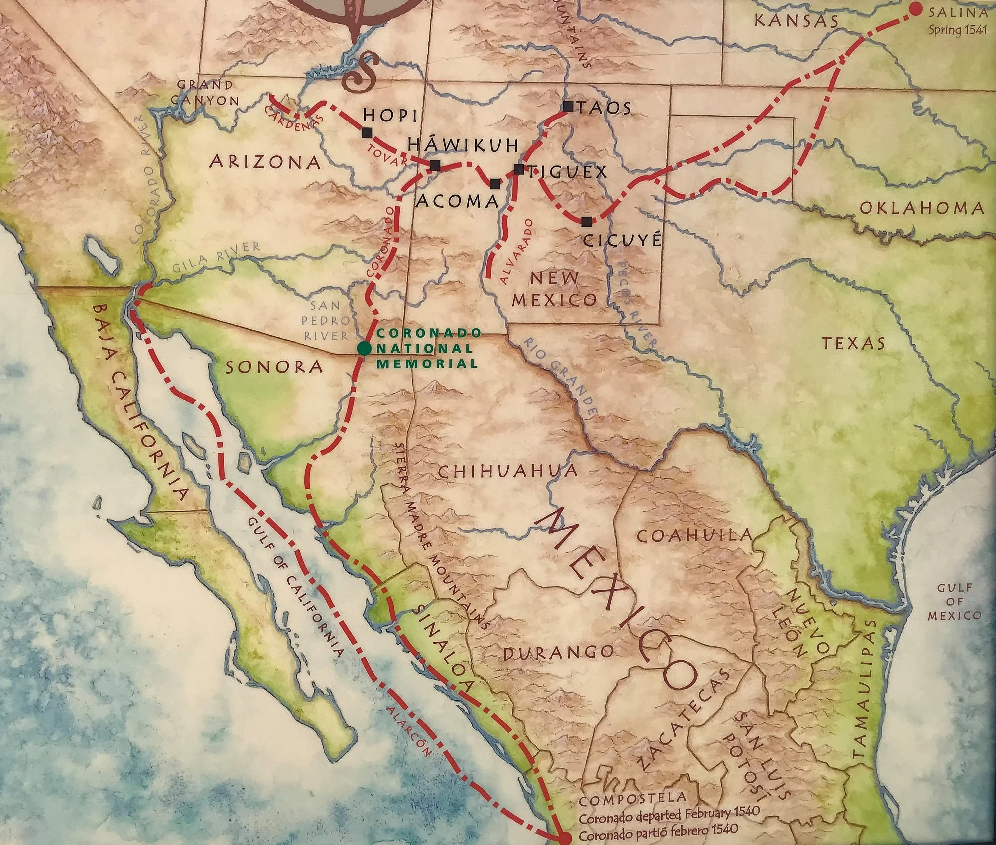 Coronado National Memorial lies at the southern end of Arizona’s Huachuca range. The Memorial was established in 1952 to commemorate the Coronado Expedition of 1540-1542. The epic journey of these migrants is outlined below.