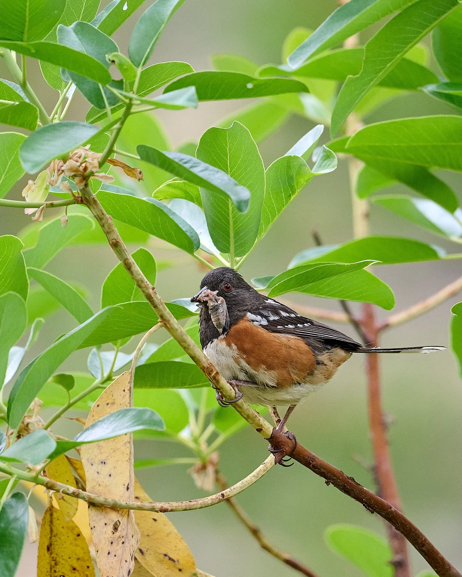 Below: left to right: Stellar’s Jay, fledgling Spotted Towhee, Western Tanager.