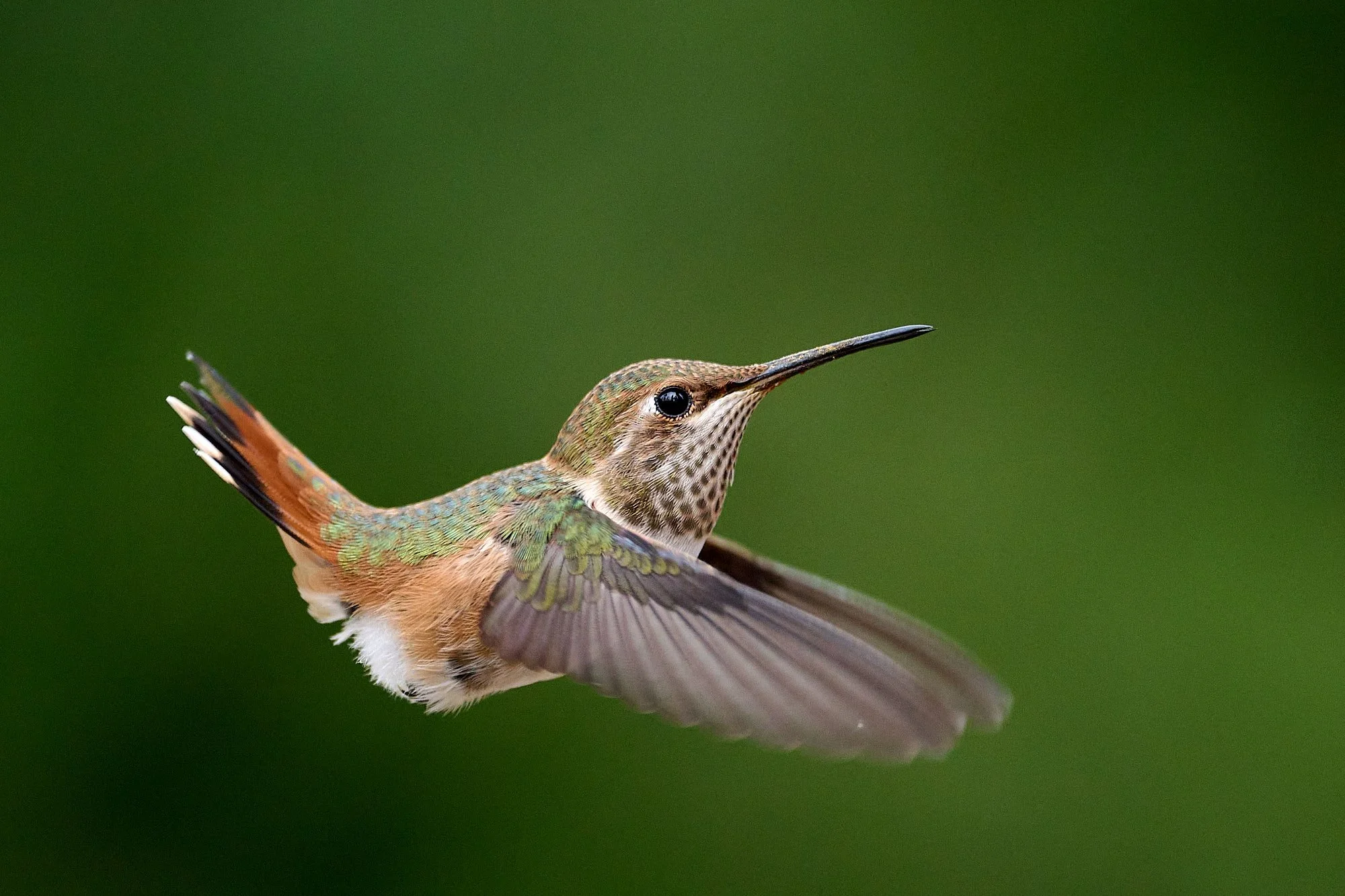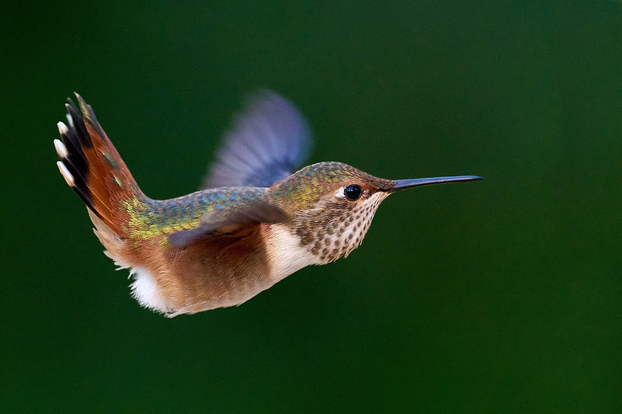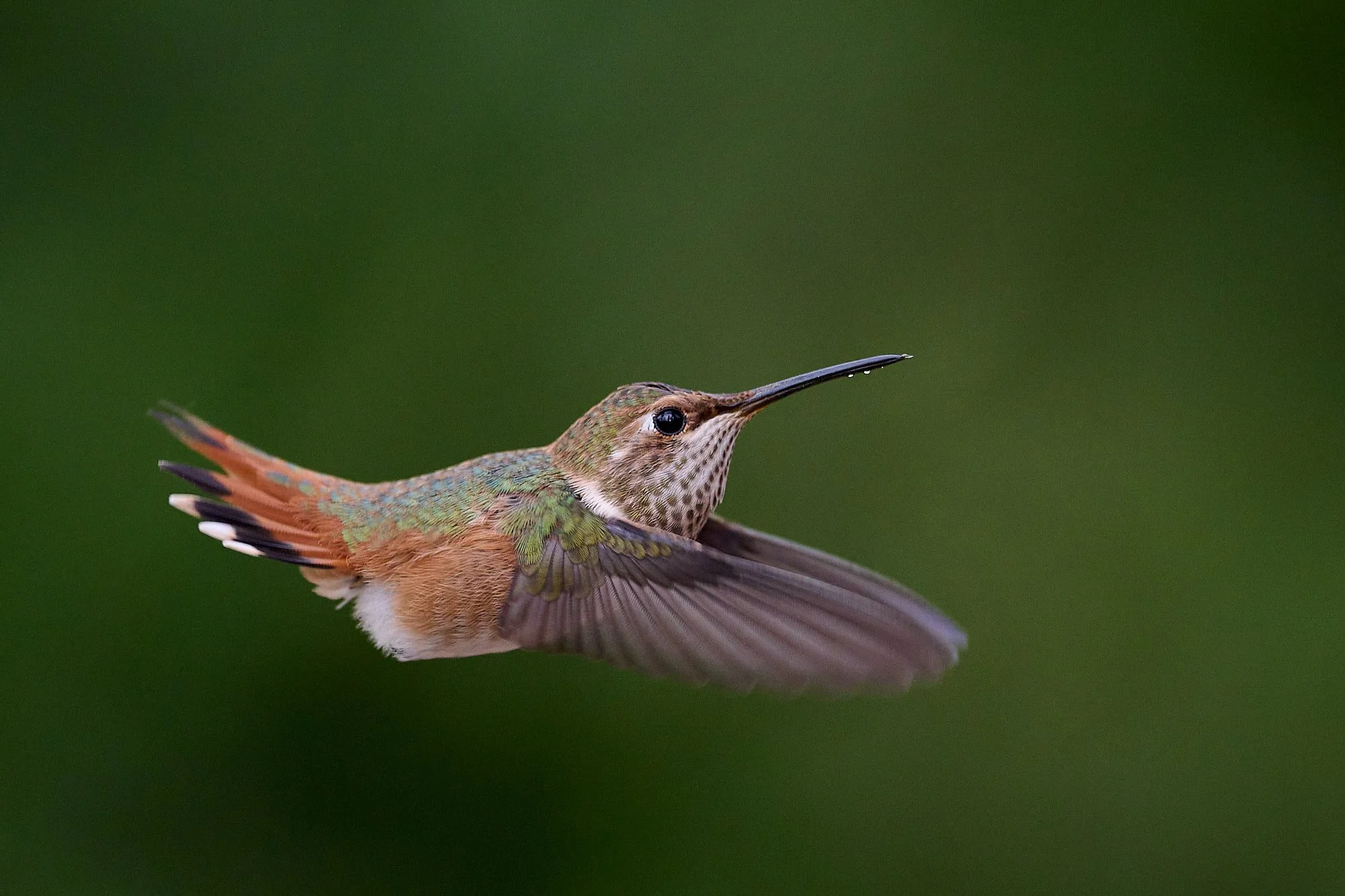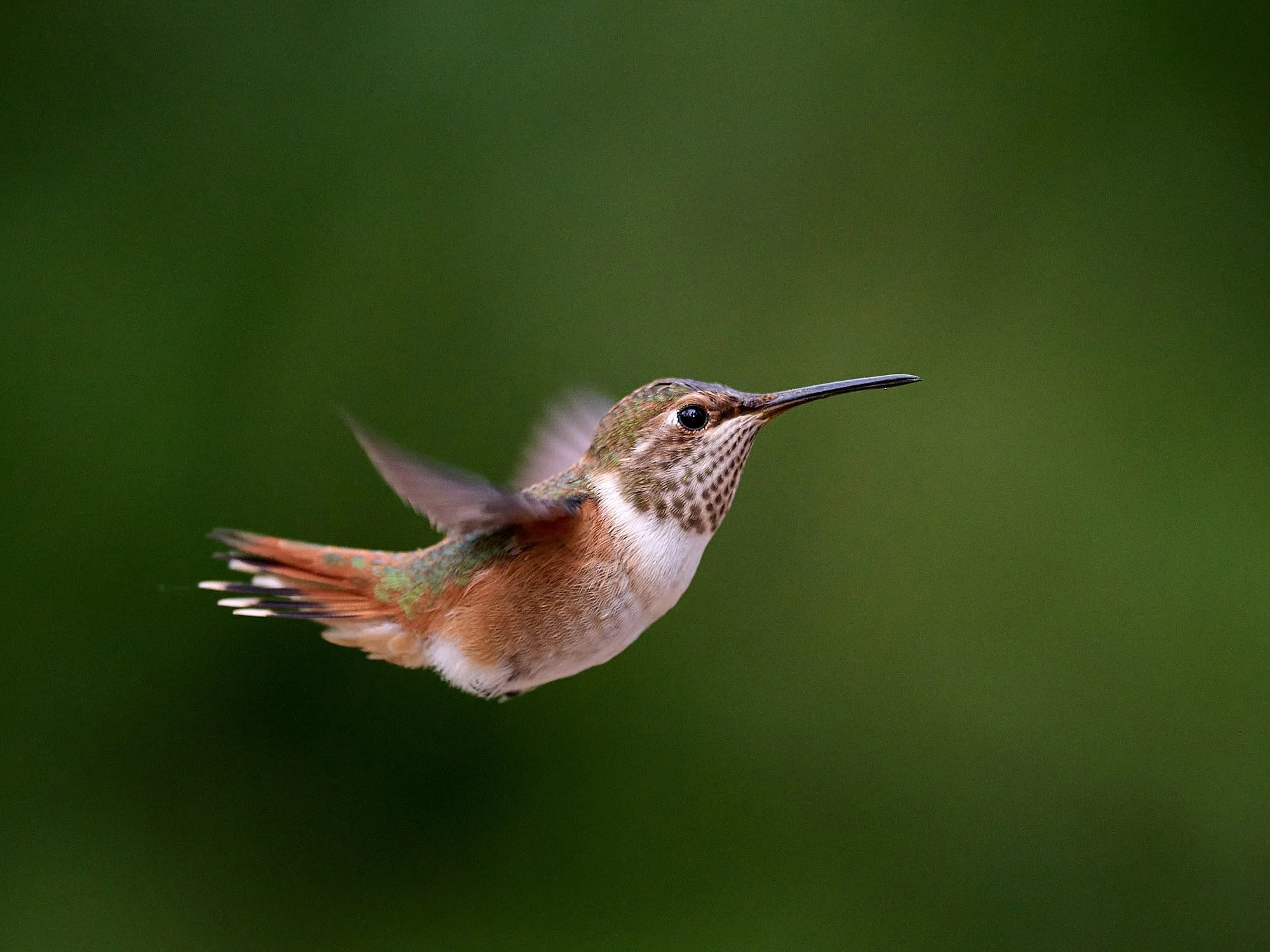 The Rufous Hummingbird is North America's “extremist” hummingbird. Venturing far from the equatorial tropics in which its ancestors evolved, it reaches the northernmost latitude of any hummingbird (61° N). After making the longest (measured in body lengths) known avian migration, individuals from Alaskan populations face a short breeding season but the longest day-length seen by any hummingbird.