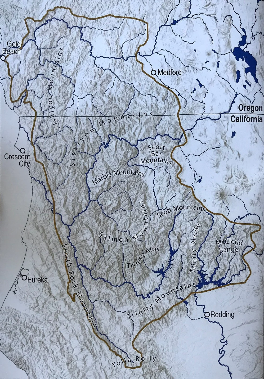 Adapted from: The Klamath Mountains, a Natural History. Eds: M. Kauffmann, J. Garwood. 2022, Backcountry Press, Kneeland, CA.
