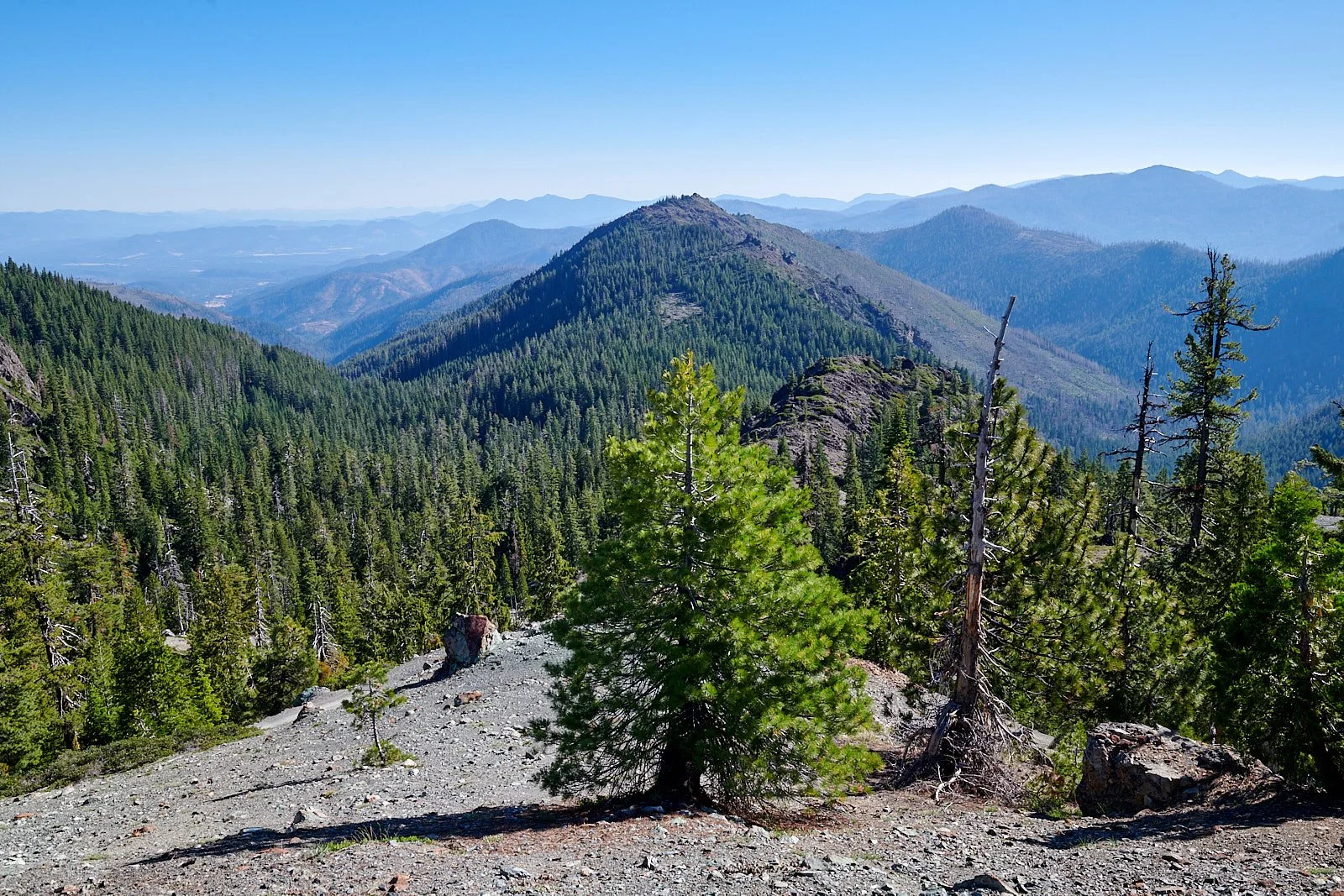 Sanger Peak lies adjacent to Broken Rib Mountain botanical zone and the Siskiyou Wilderness. The area contains an unusually high concentration of conifer species because of the complex geology and the pattern of wildfire. We recognized Port Orford and incense cedar, lodgepole, Jeffrey and western white pine, Brewer spruce, and Douglas and Red fir.