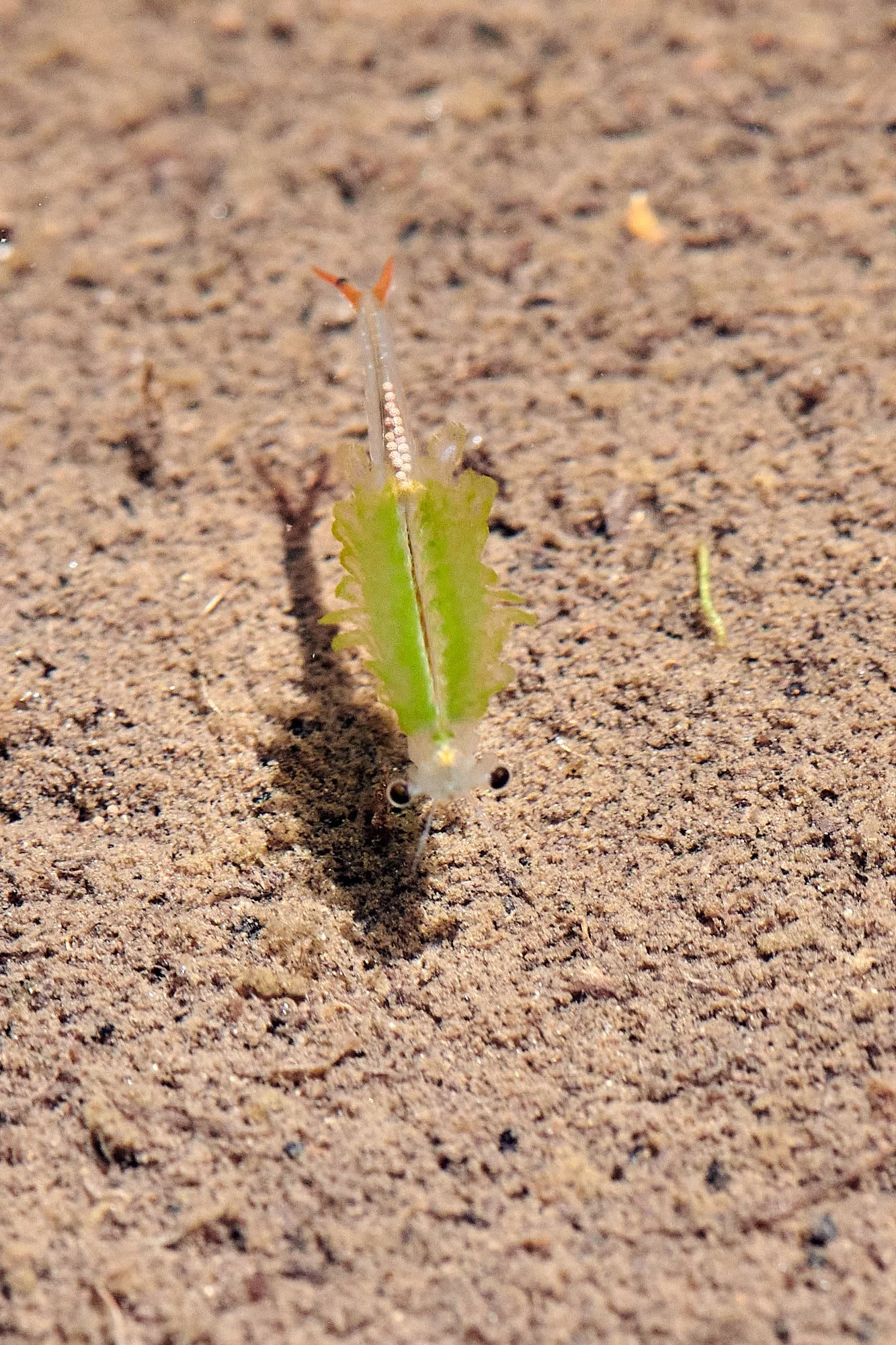 This female spiny-tailed fairy shrimp seemed to be burying her eggs in the soil.