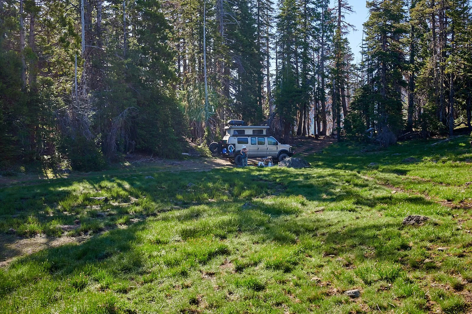 Naturally, that included mosquitoes. We ended up adjusting our daily schedule to be inside the Sportsmobile an hour after sunset and stayed there until morning sunshine reached the meadow.