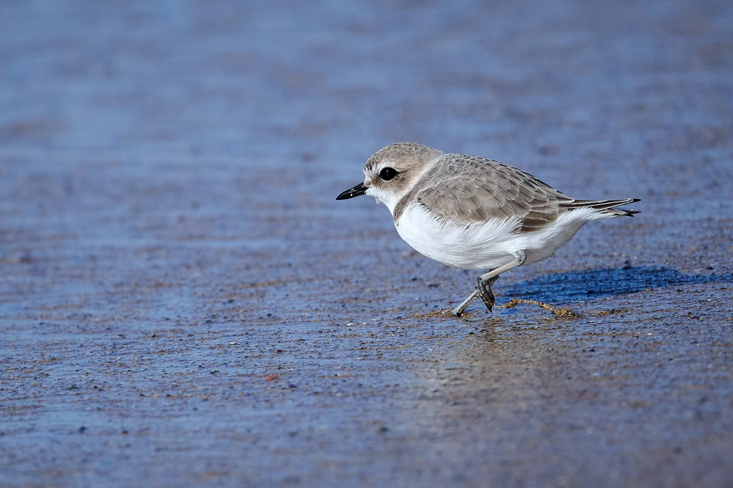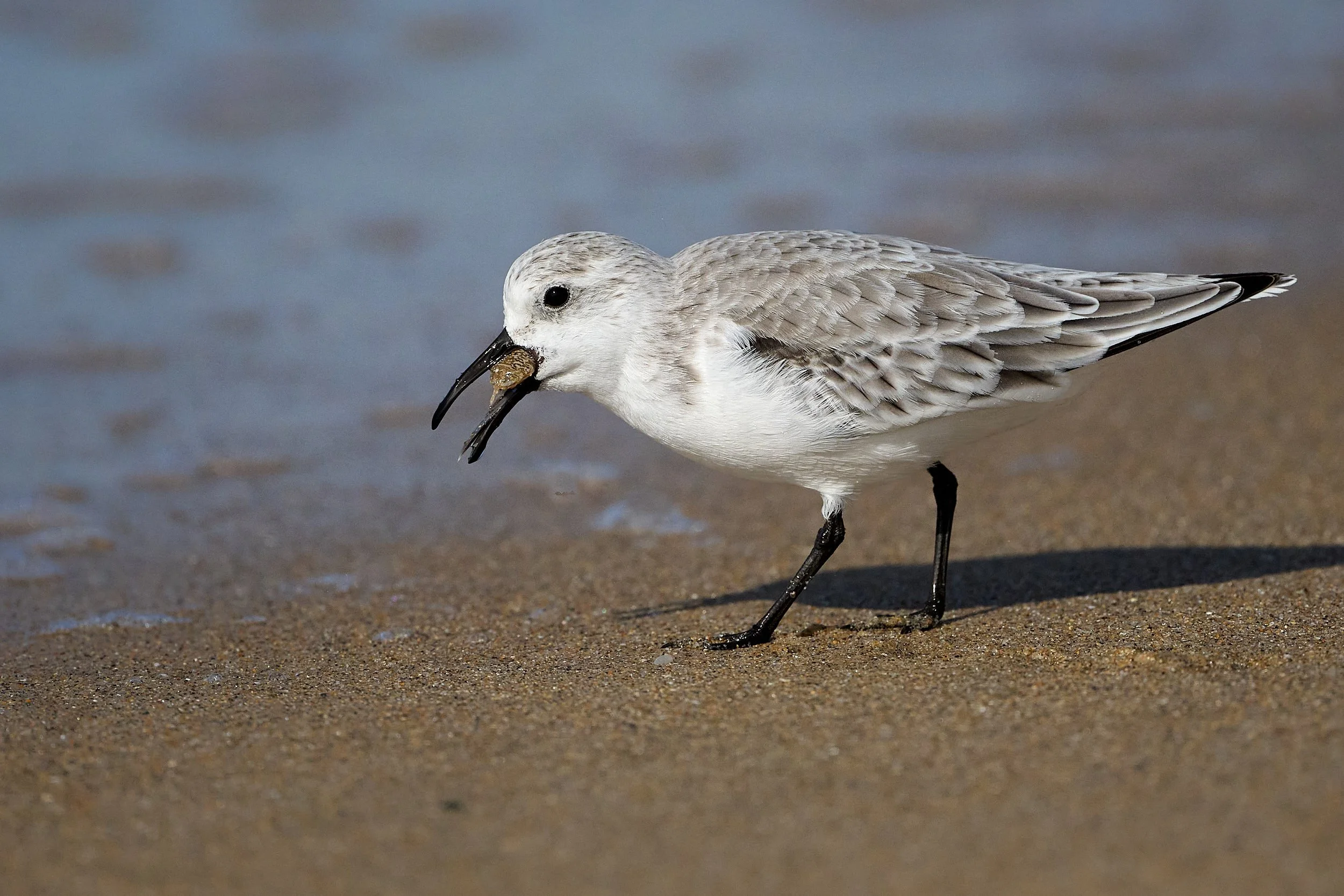The Sanderling is most commonly associated with sandy coastal beaches, which it occupies in winter and while on migration. When foraging on sandy beaches, Sanderlings move quickly, running ahead of incoming waves and chasing after receding ones, probing the sand for food.