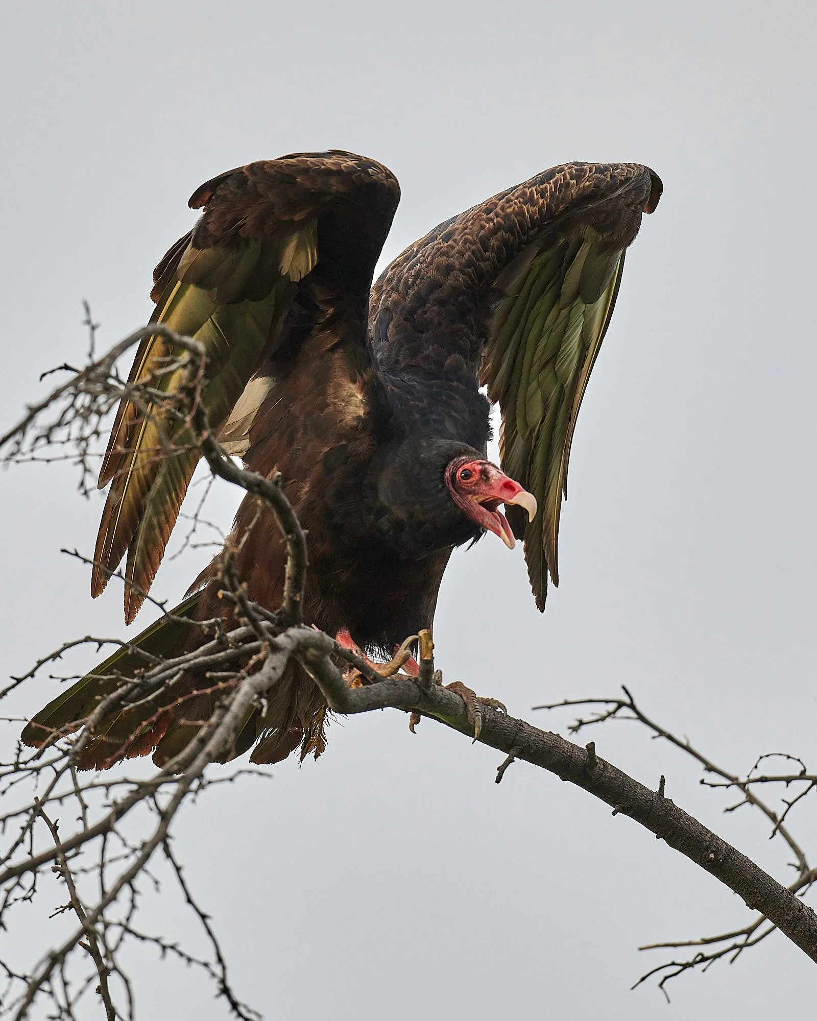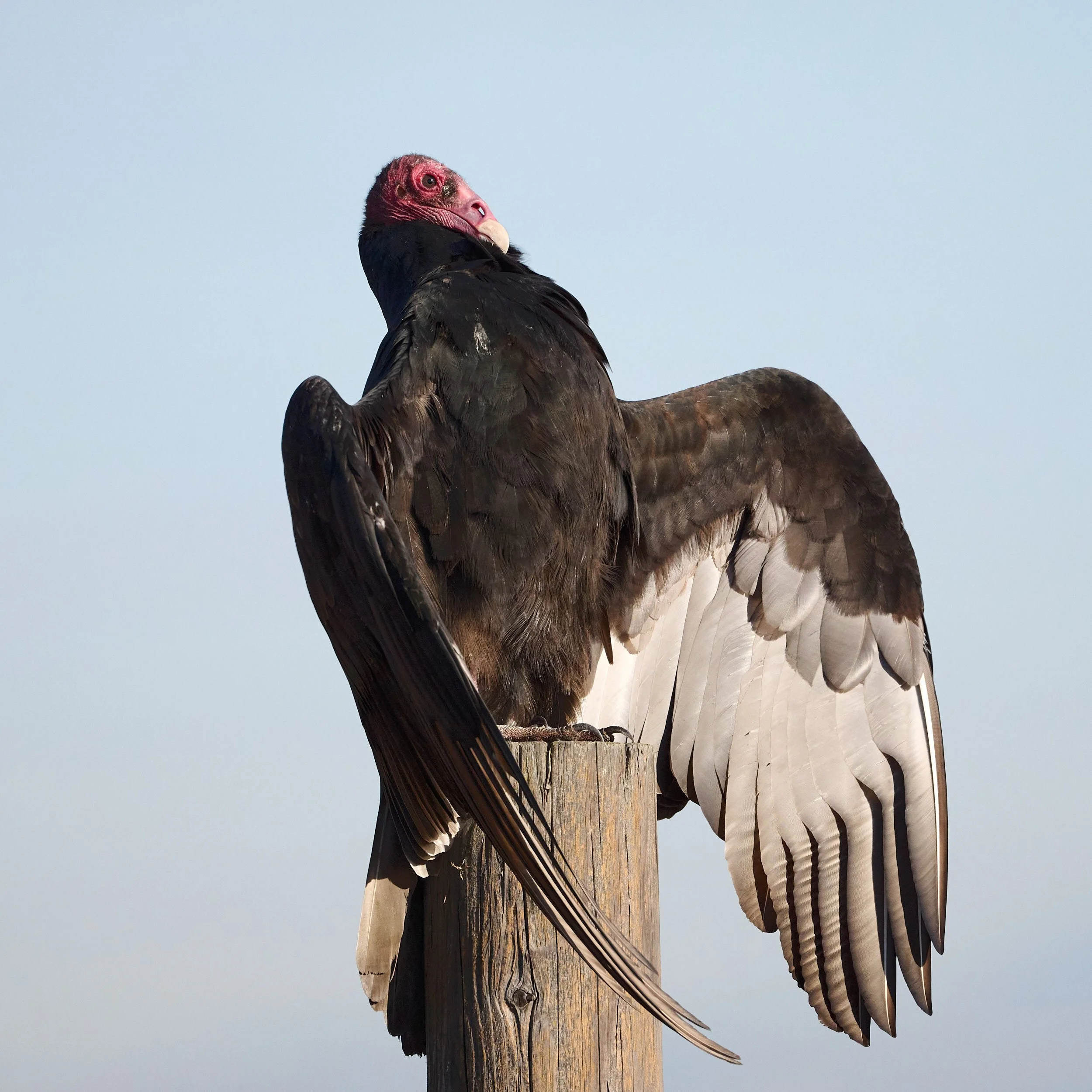 California Condor is massive in size and extremely rare. It was rescued from extinction by conservation efforts and captive-bred birds have been released at a number of sites. Generally, vulture populations world-wide are declining. New World vultures (Turkey & Black Vultures) are considered more closely related to storks than to hawks and eagles.