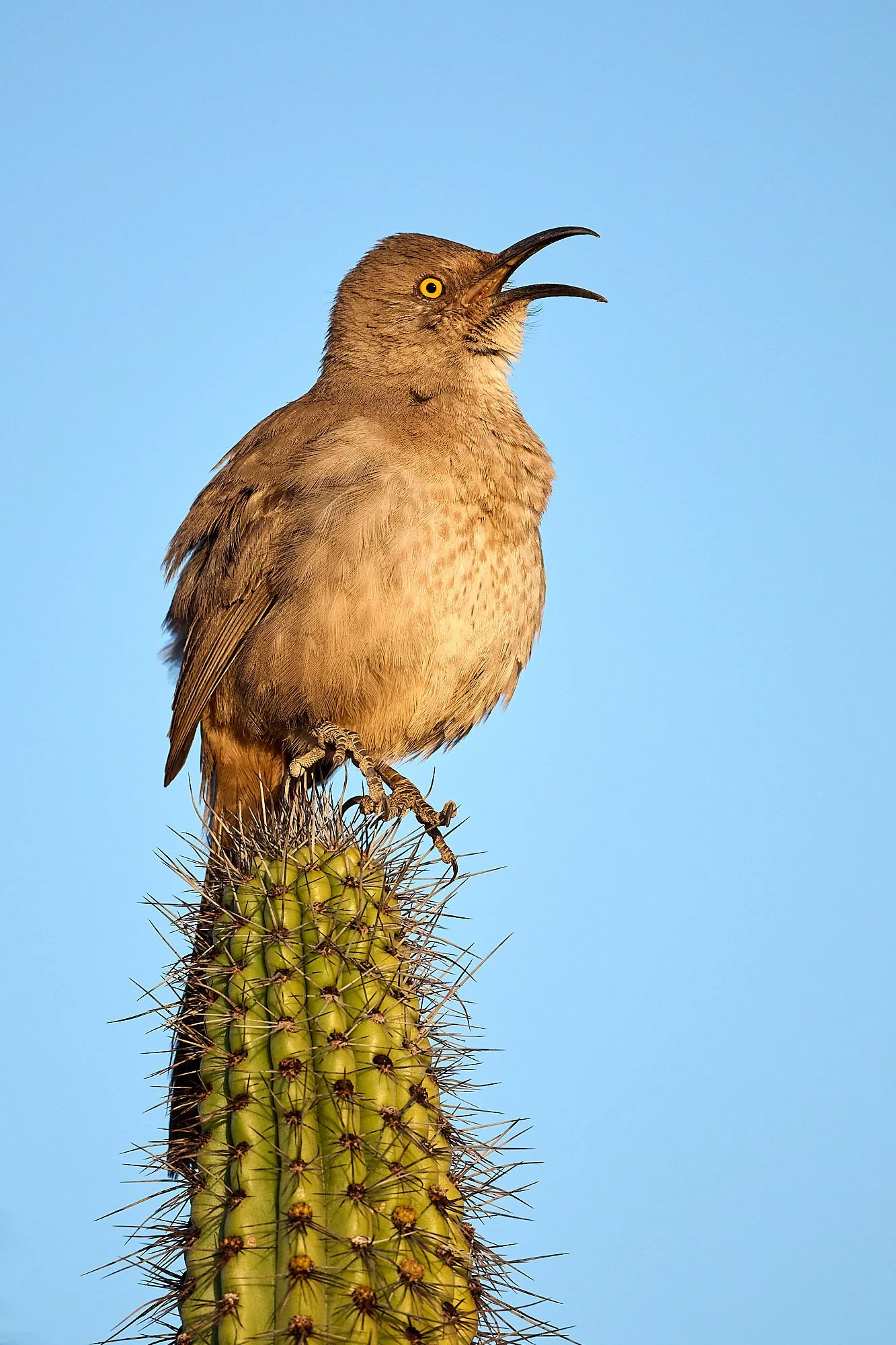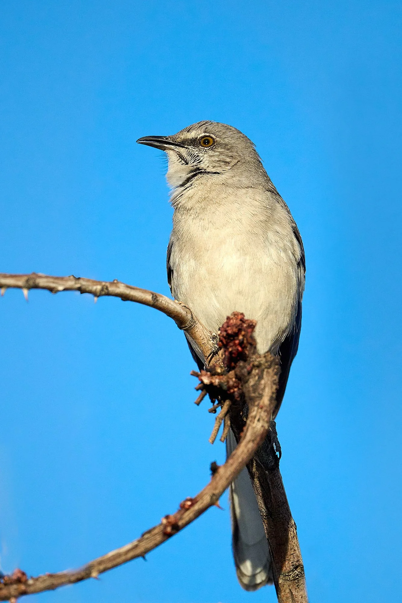 The Northern Mockingbird is renowned for its complex, ebullient, mimicking song. Gray Catbird can recognize cowbird eggs and eject them from its nest—an ability that is learned, not innate. Thrashers are quite vocal and often heard before they are seen.
