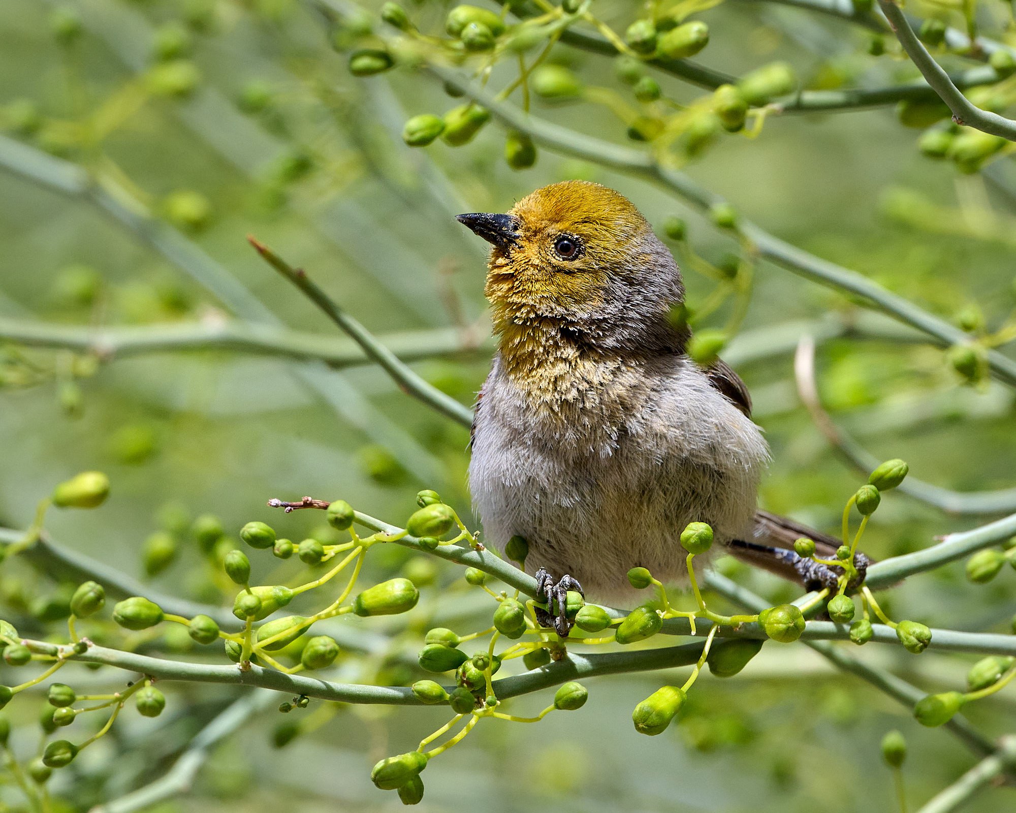 Represented by 13 species, these social birds feed on insects and seeds gleaned from vegetation. Chickadees and titmice nest in tree cavities, Verdin’s nest is a spherical ball of twigs, and Bushtit construct pendulous, hanging basket nests.