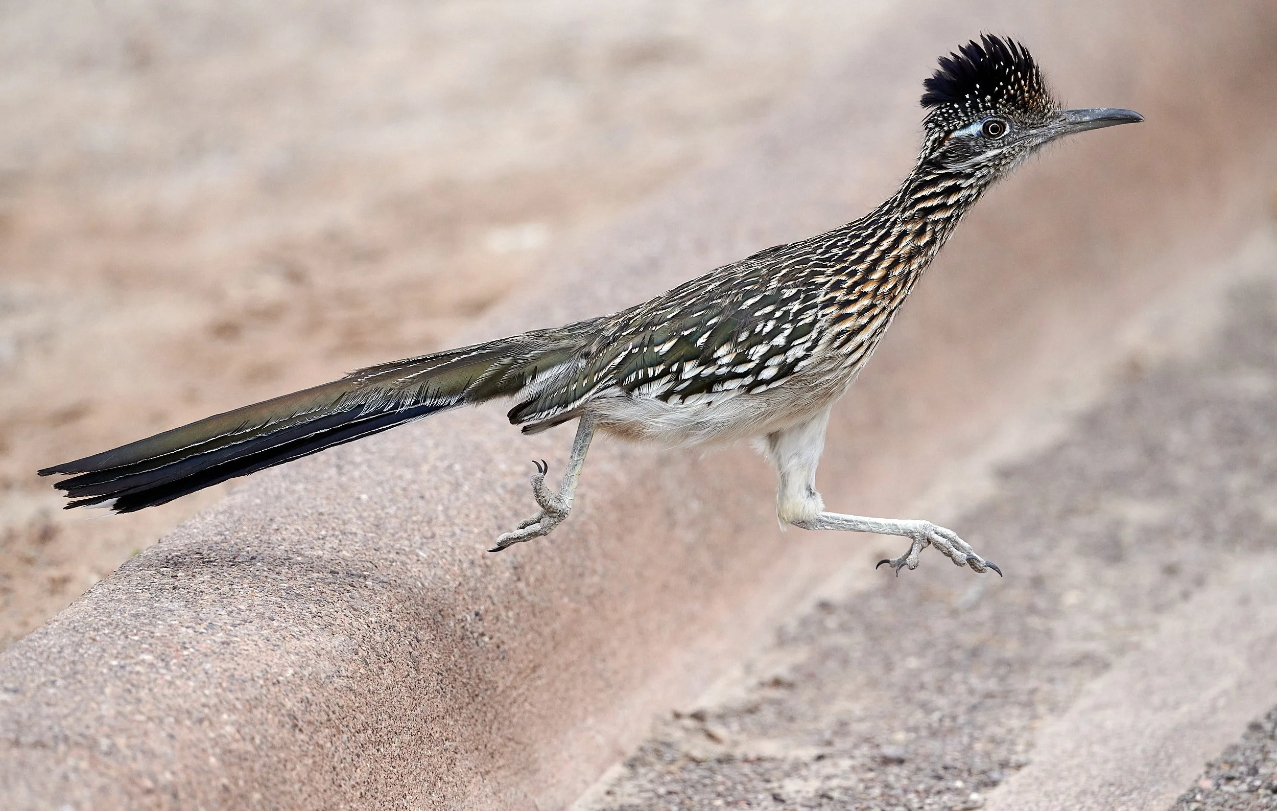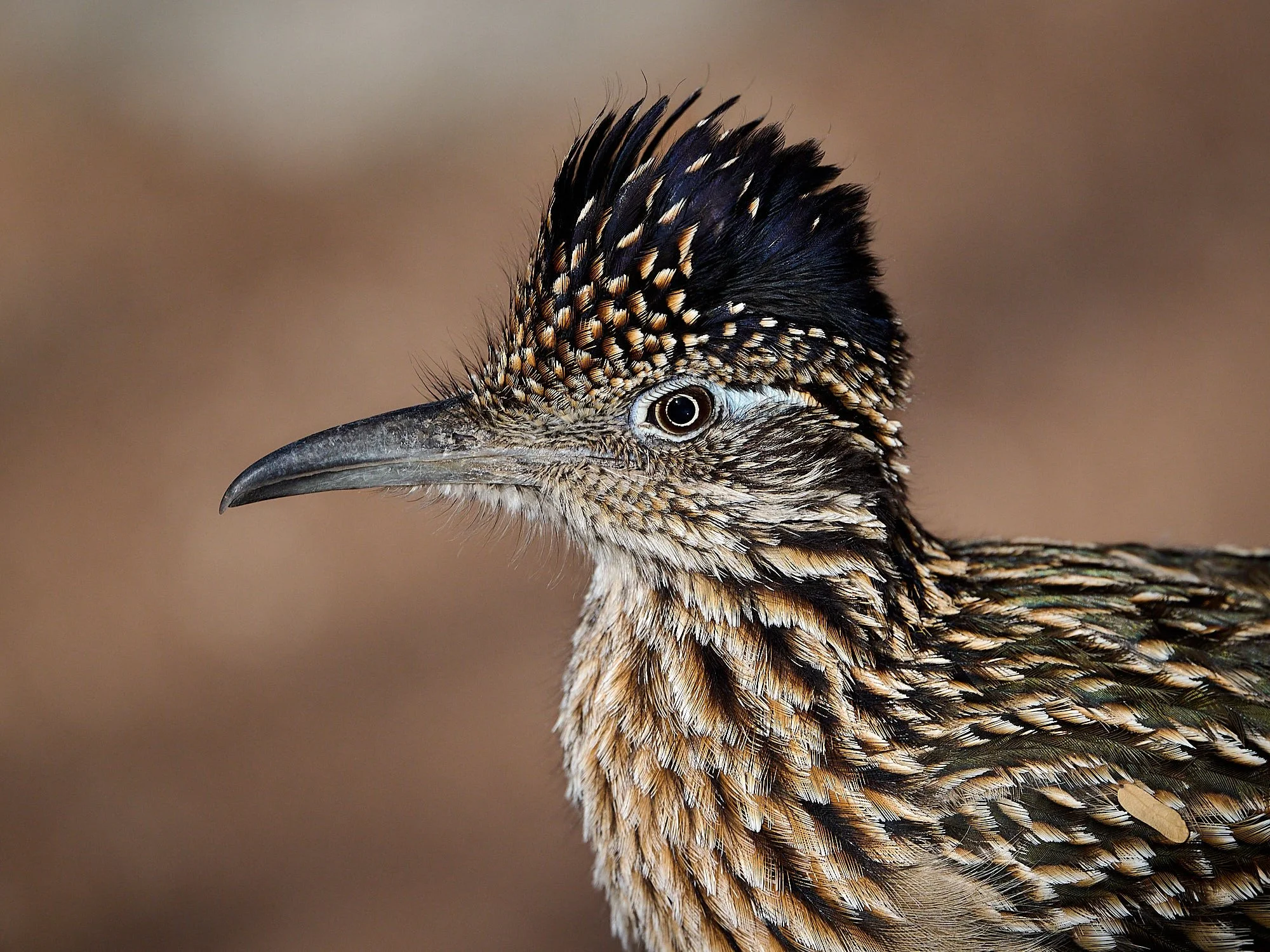 Paisano, Chaparral Cock, Snake Killer, and Medicine Bird are some of the many colorful names bestowed on the Greater Roadrunner, a conspicuous but enigmatic terrestrial cuckoo of the American Southwest. An opportunistic predator, it feeds on snakes, lizards, spiders, scorpions, insects, birds, rodents, and bats, which it beats repeatedly against a hard substrate before consuming. During severe food shortages, it may eat its own young.